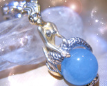 This extraordinary pendant is unlike any piece of jewelry you have ever seen-it is an artifact of mystery, legacy, and enchantment. Fashioned of sterling silver and gold, it depicts a graceful mermaid poised on a crescent, cradling a luminous larimar globe that glows like a piece of ocean captured in stone. Its exact age is unknown, but its story traces back through world travelers, seekers, and spiritual custodians who recognized that it carries more than beauty-it carries power.