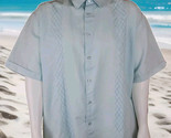 - Havanera Cuban Shirt Mens 3XL Blue Embroidered Linen Cotton Blend Button Up