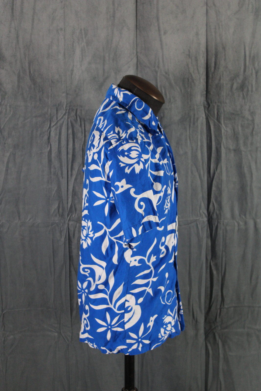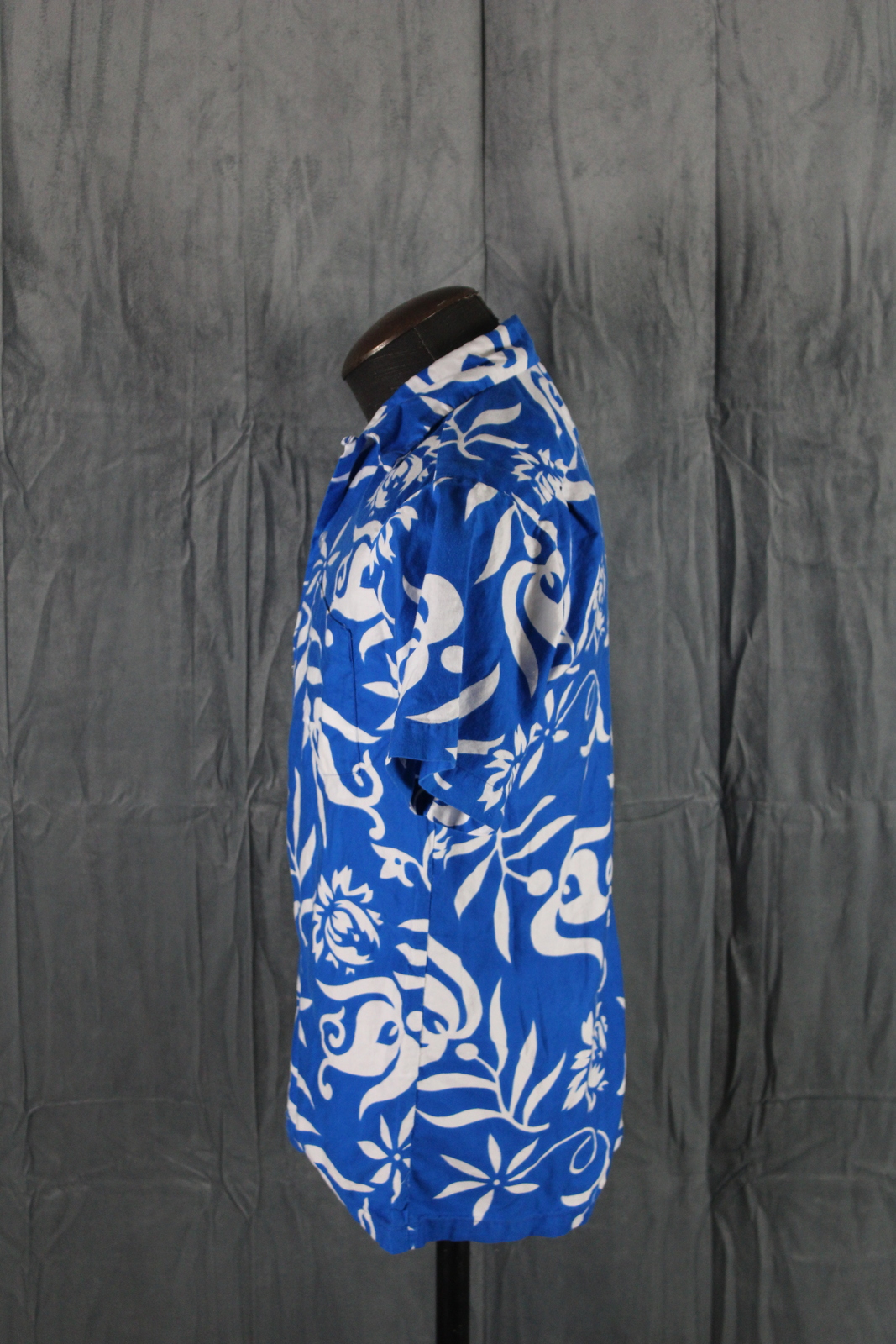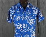 - Hawaiian Shirt (VTG) - Blue and White Floral Leaf Pattern Paradis Hawaii - Small