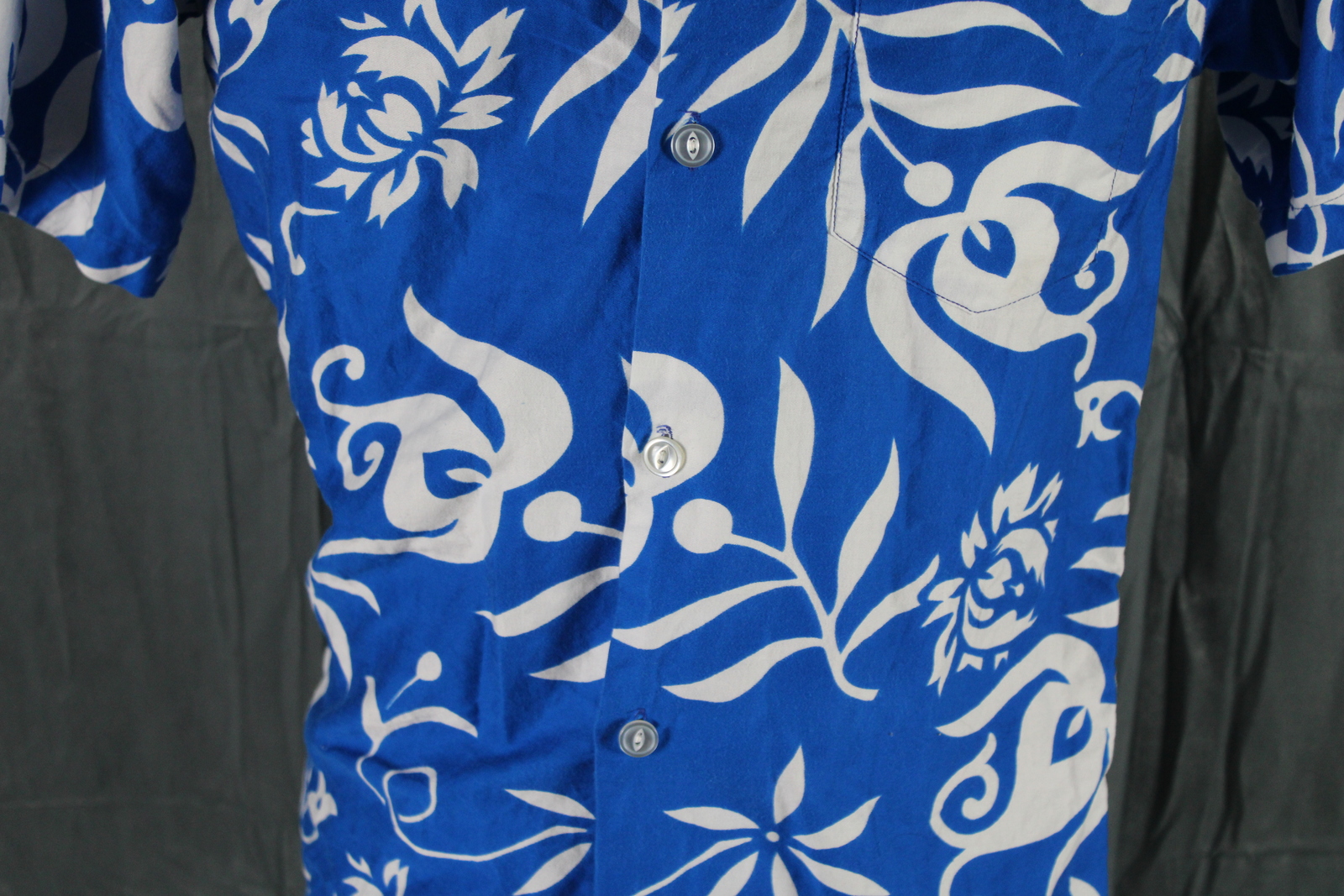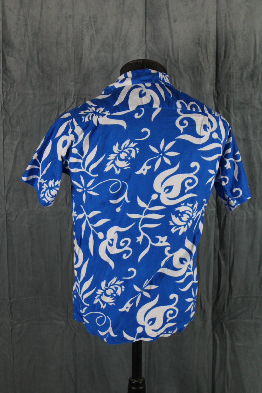 Hawaiian Shirt (VTG) - Blue and White Floral Leaf Pattern Paradis Hawaii - Small