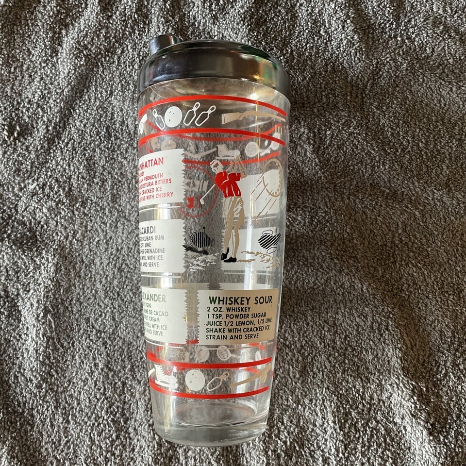 - Hazel Atlas Cocktail Shaker Glass Mixer Golf Sailing Sports Vintage With Lid 9”