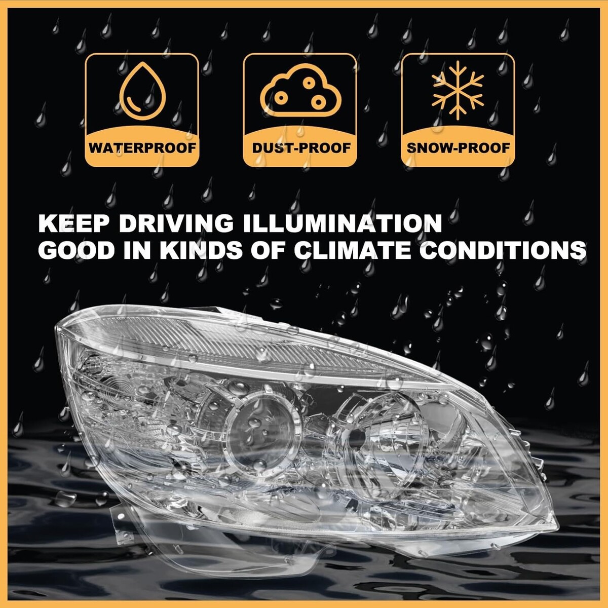 ?Material: The C300 Headlight is made of high-quality sealed ABS plastic. Headlight Constructed with durable polycarbonate lenses.the polycarbonate lens tough housing are highly resistant to shock, vibration for any tough road.