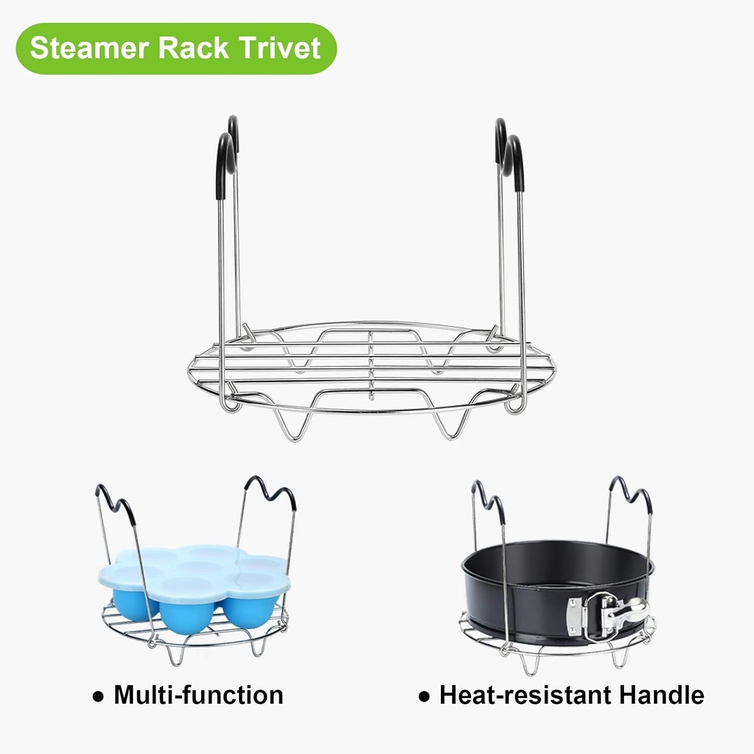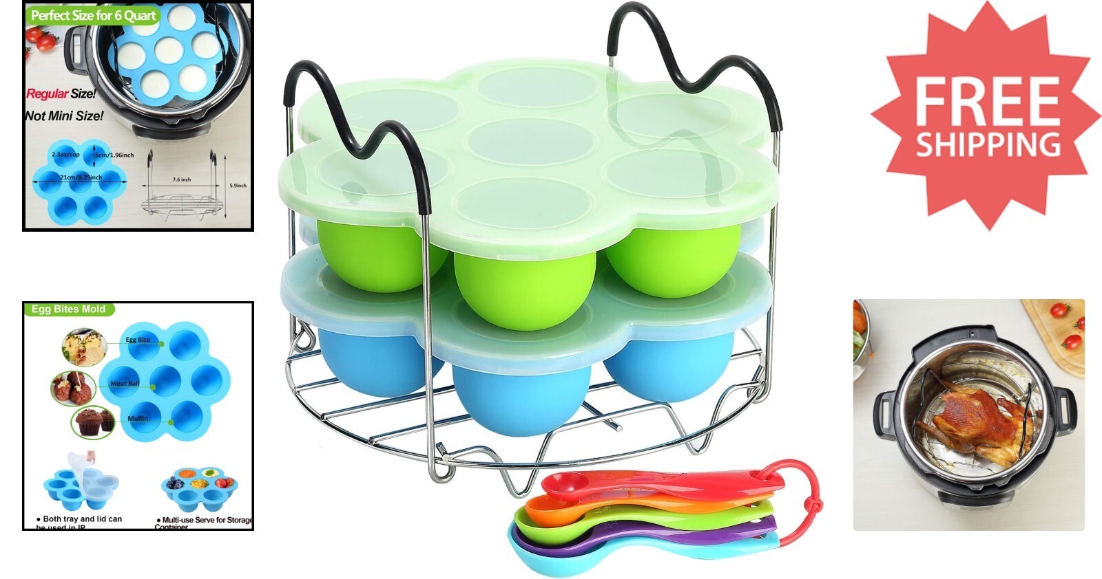 This versatile Instant Pot Accessories Set includes a durable stainless steel steamer rack with heat-resistant handles, 7 individual egg bites molds made from food-grade silicone, 5-piece measuring spoons, and a recipe paper. Perfect for creating healthy egg bites, poached eggs, brownies, popsicles, baby food, and yogurt. The lid ensures your frozen foods stay fresh longer. Designed for safety and longevity, these accessories are compatible with most Instant Pot models. Enjoy endless culinary possibilities with this comprehensive set.