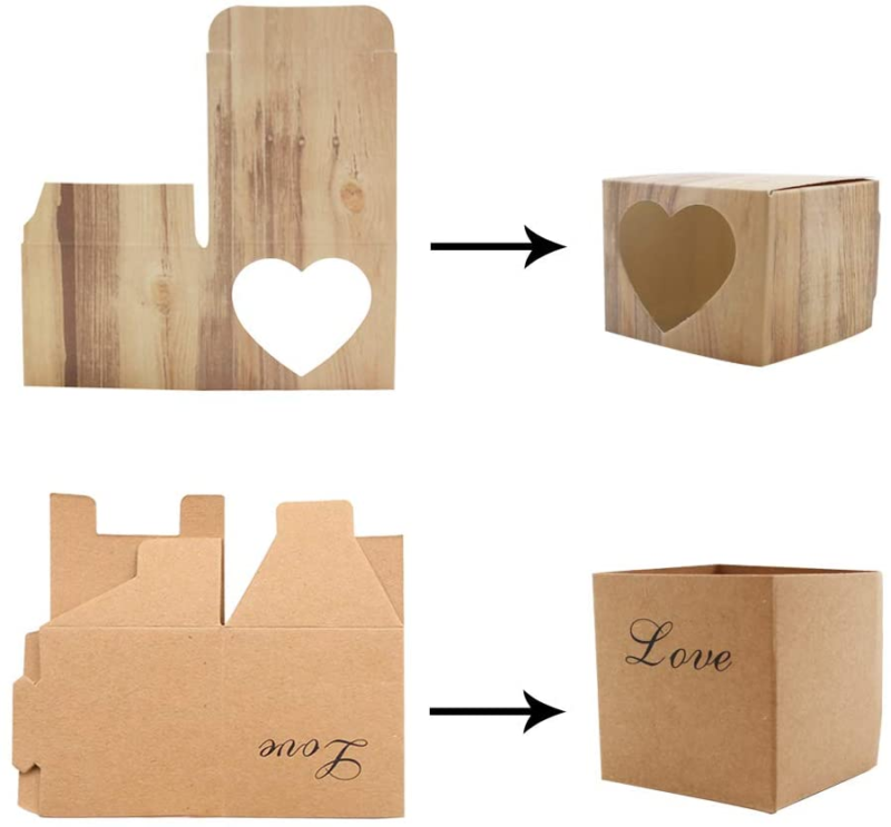 Flat shipping, each gift box comes with a khaki burlap twine, you can tie a cross or bowknot on top, which will be more elegant and romantic for party.
