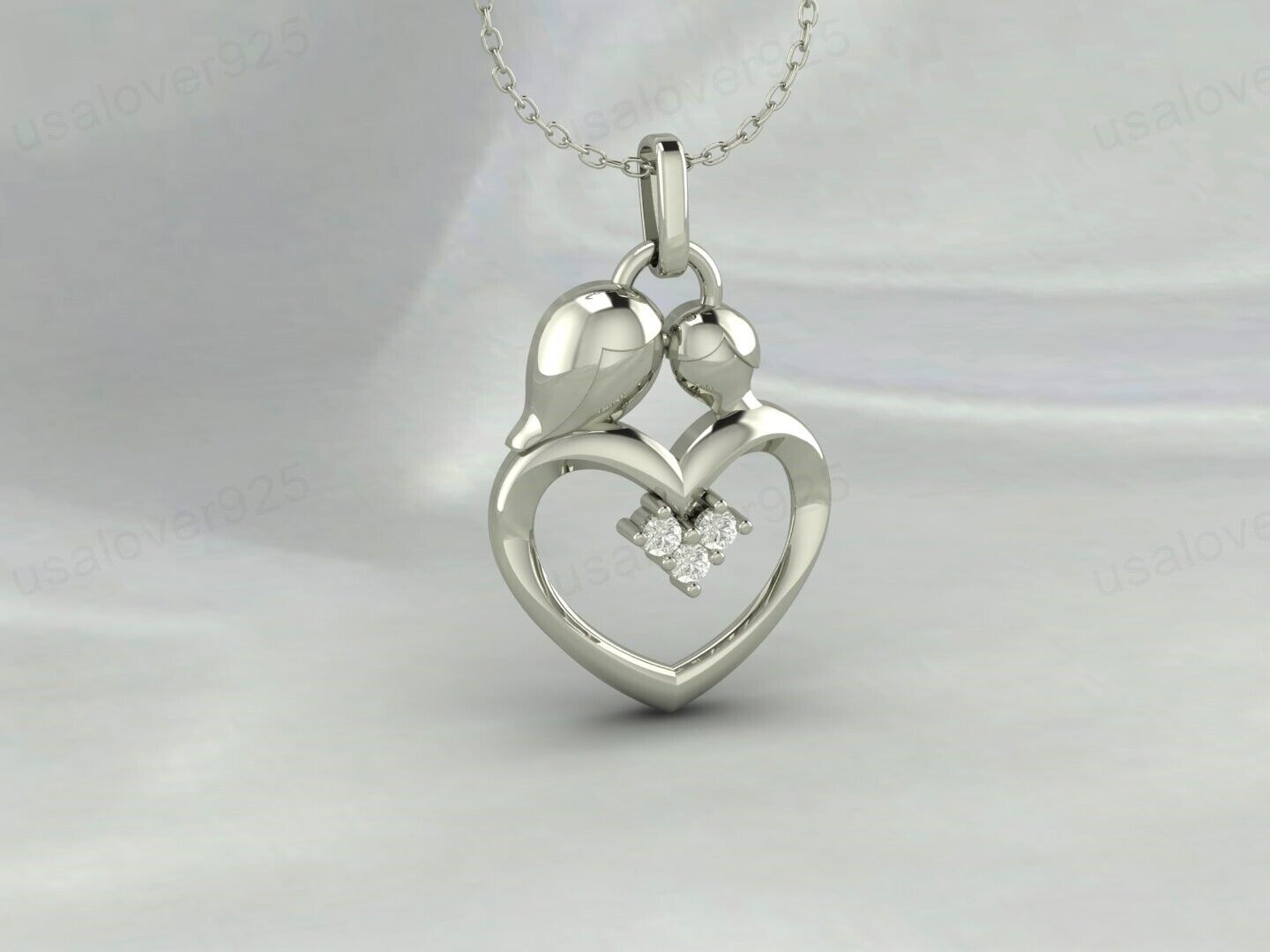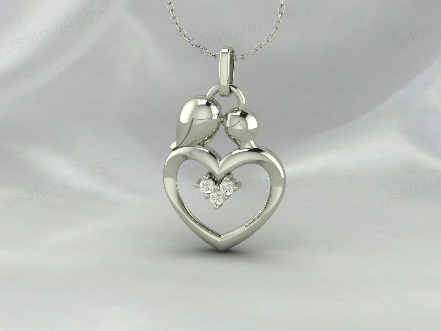 - Heart Shape Diamond Stone 925 Sterling Silver Handmade Modern Unique Pendant