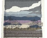This original mixed media artwork merges torn handmade paper layers and delicate stitched elements to evoke a quiet landscape?horizons, trees, and grasses rendered with texture and subtle color. The stitched border frames the piece with a bold, tactile aesthetic. The piece is unframed and ready for mounting or display as you choose.
