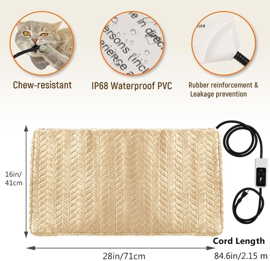 - Heating Pad for Pets Heated Mat Timer Chew Resistant Cord 28 x 16 Beige Gift