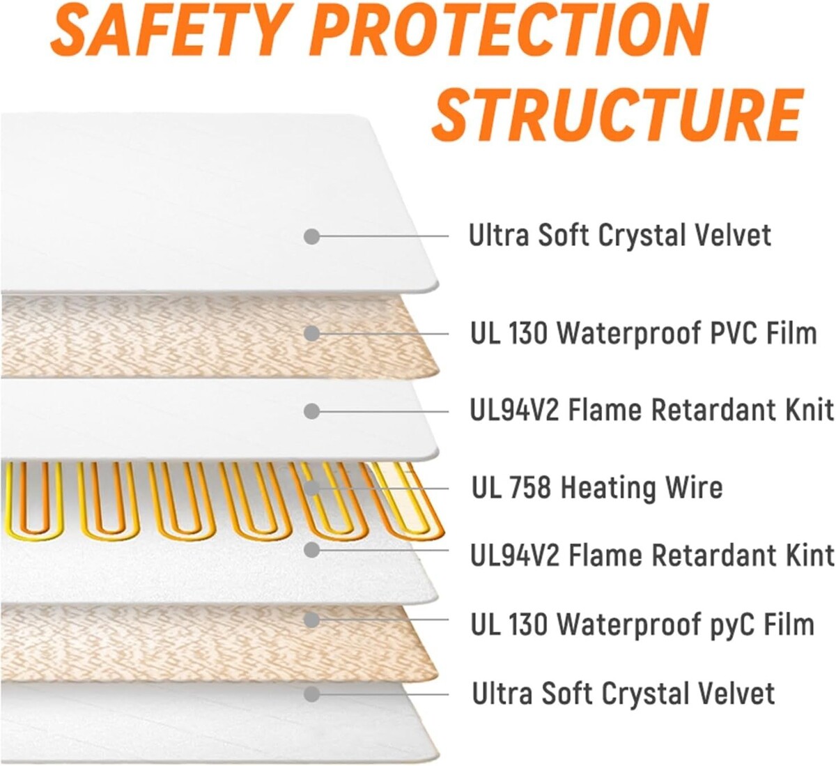 Fast and Safe Heating: Features a 7-layer protective structure, designed to evenly distribute heat while preventing burns and overheating.