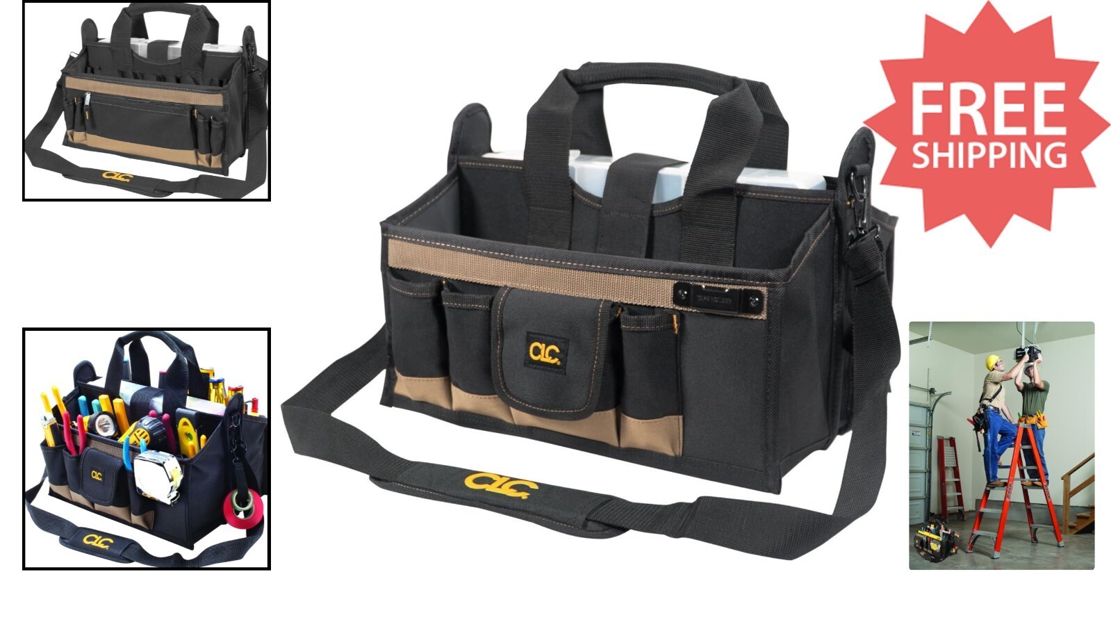 - Heavy-Duty CLC Tool Bag - 16 Pockets, Adjustable Strap, & Parts Tray Included