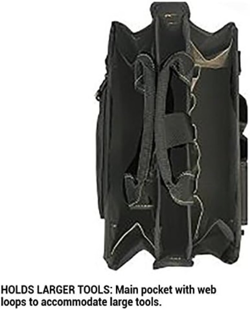 **Accommodates Larger Tools**: The main pocket is equipped with durable web loops specifically designed to hold larger tools securely.