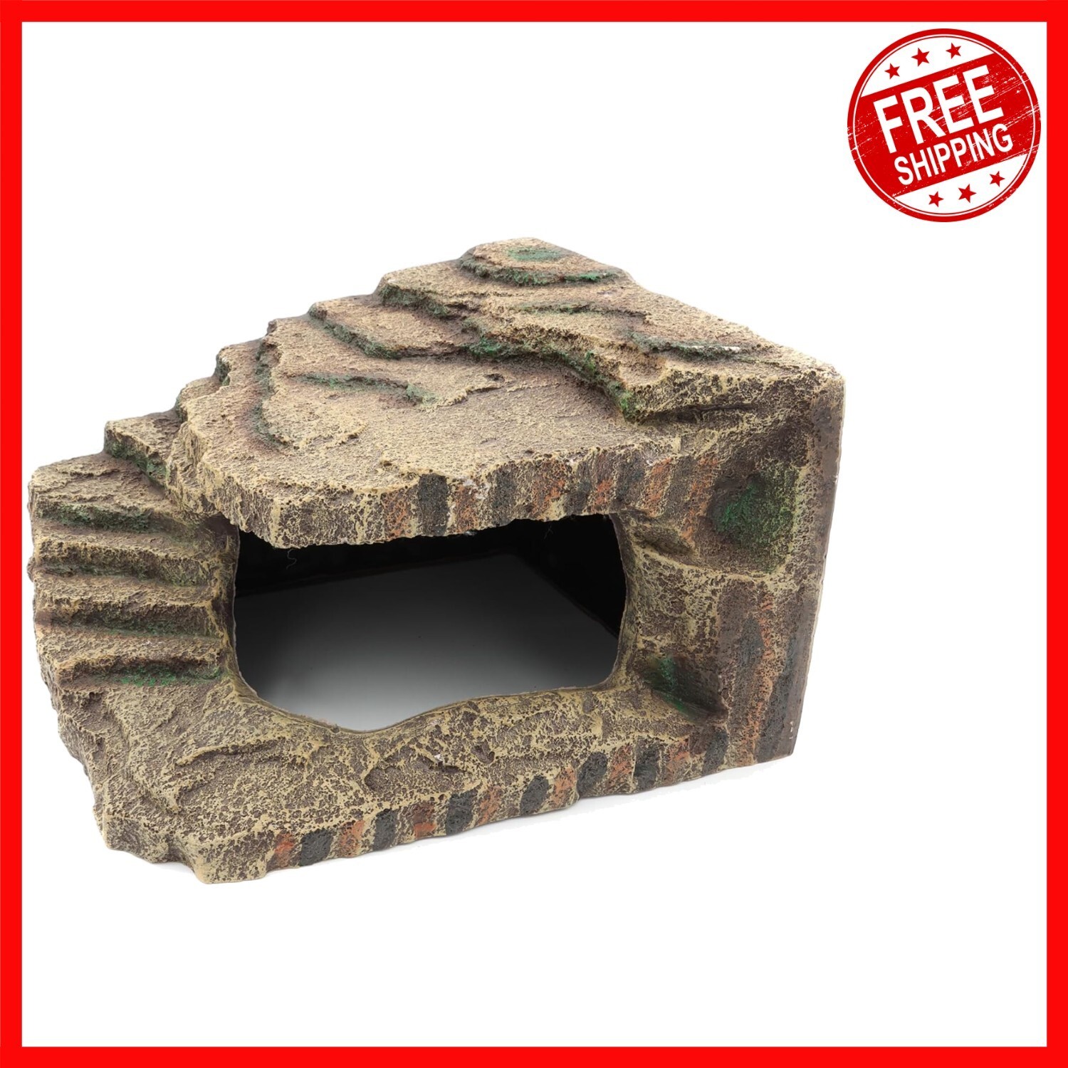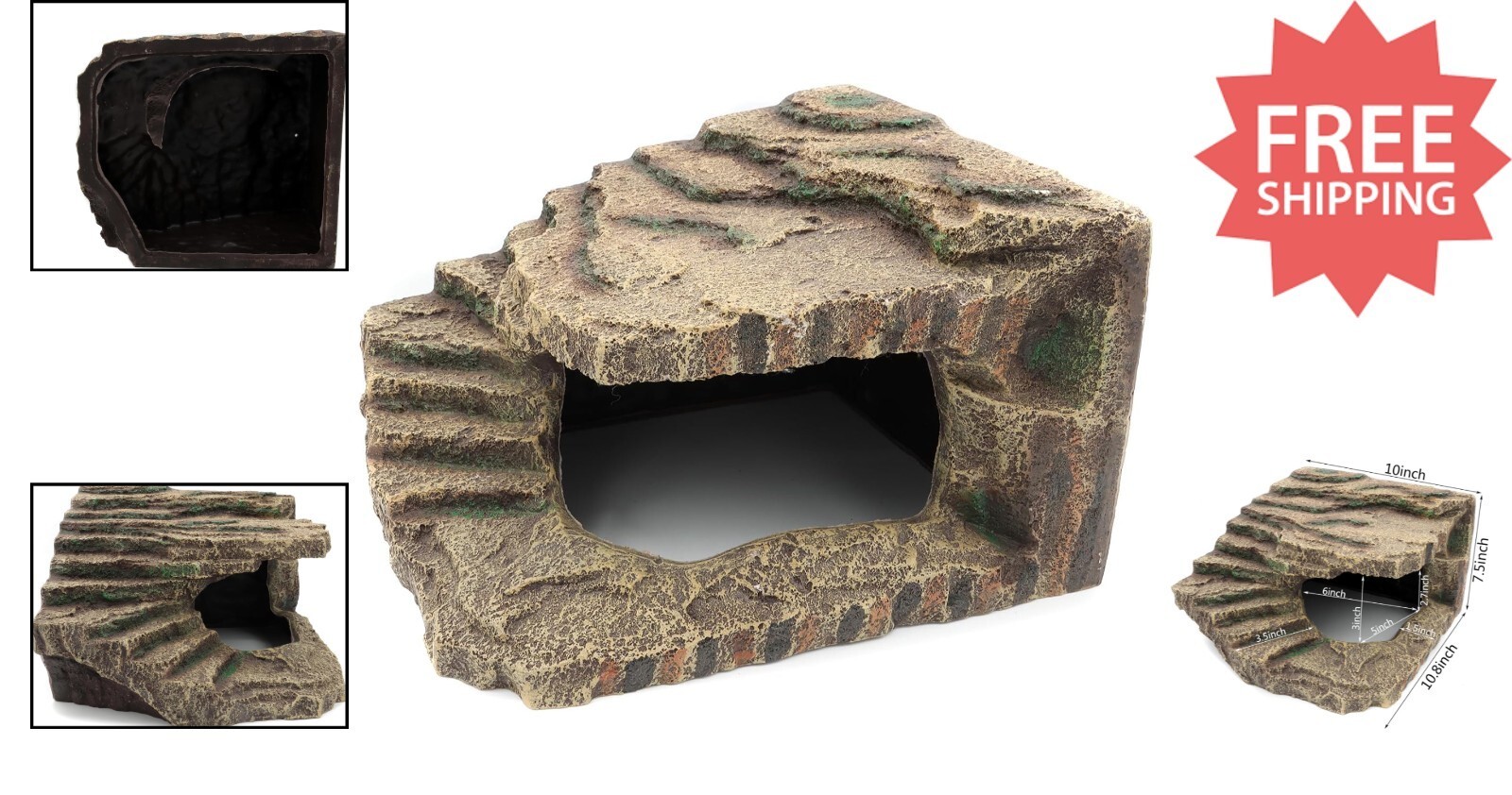 Create a naturalistic habitat for your pets with our realistic rock-themed hide and cave. Designed to blend seamlessly with terrestrial or aquatic environments, this stable, anti-tippable shelter offers your reptiles, amphibians, or small pets a private, stress-reducing space for hiding, shedding, or egg-laying. Available in multiple sizes, including a convenient medium at 10.8 x 10 x 7.5 inches, it's perfect for small to medium reptiles, amphibians, hamsters, fish, or shrimp. Enhance your pet's comfort and well-being with a habitat that combines functionality and natural beauty.