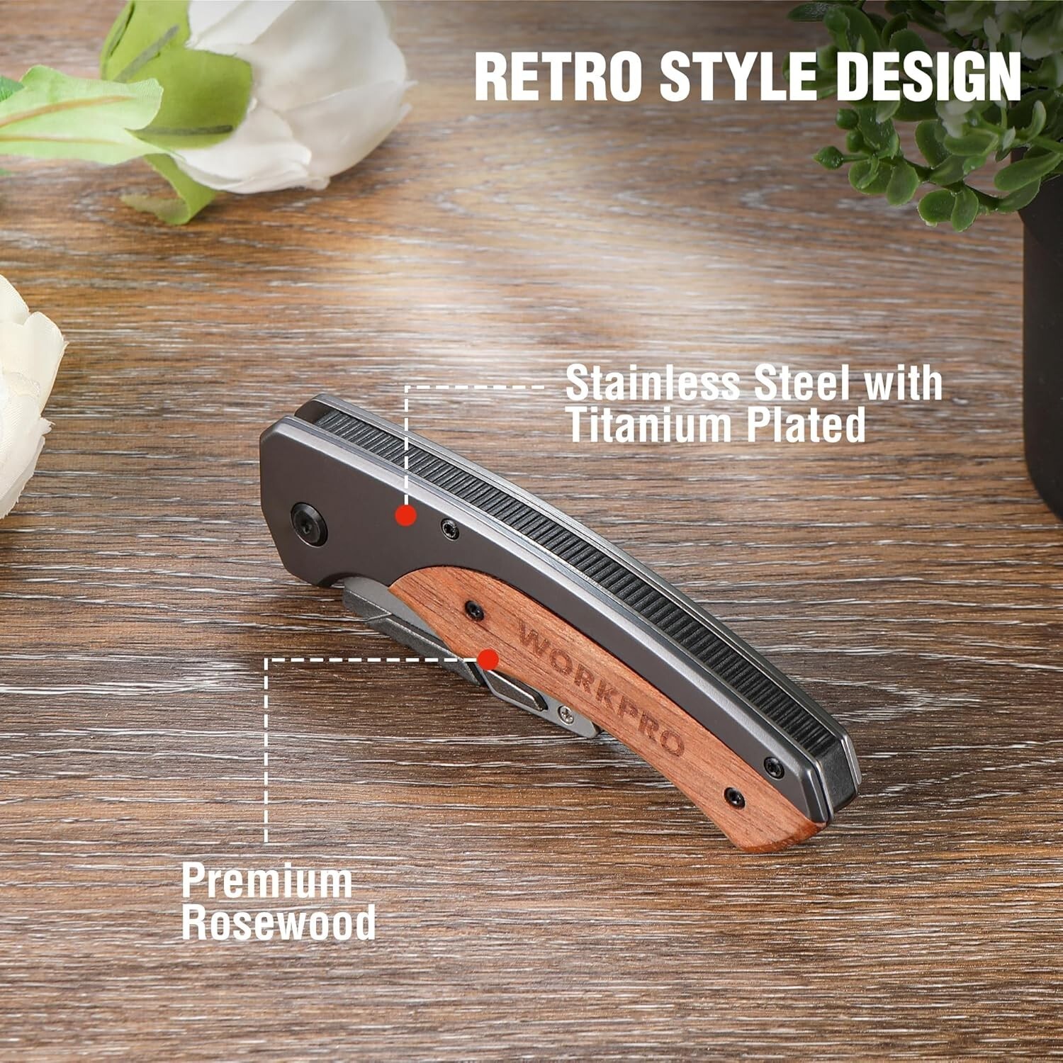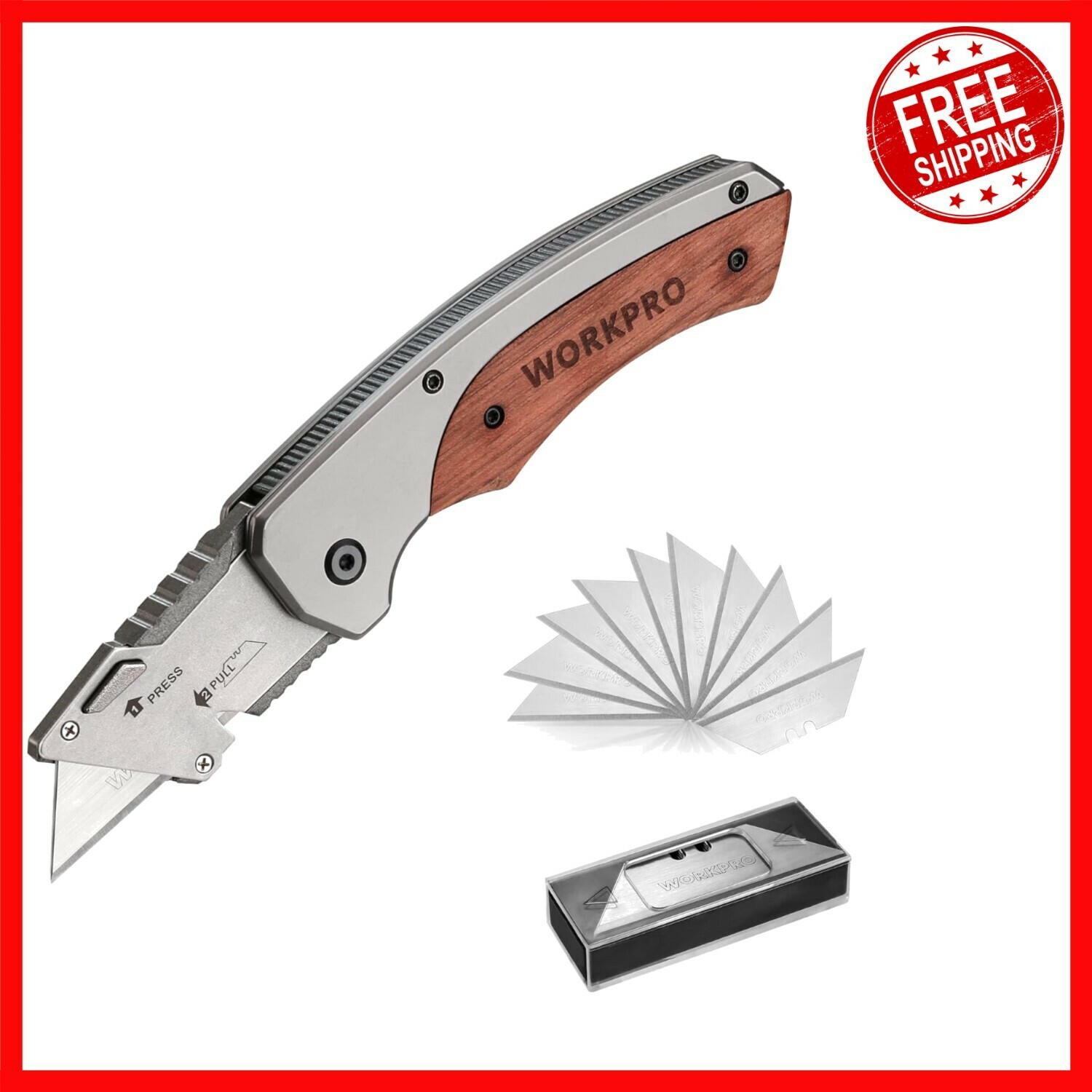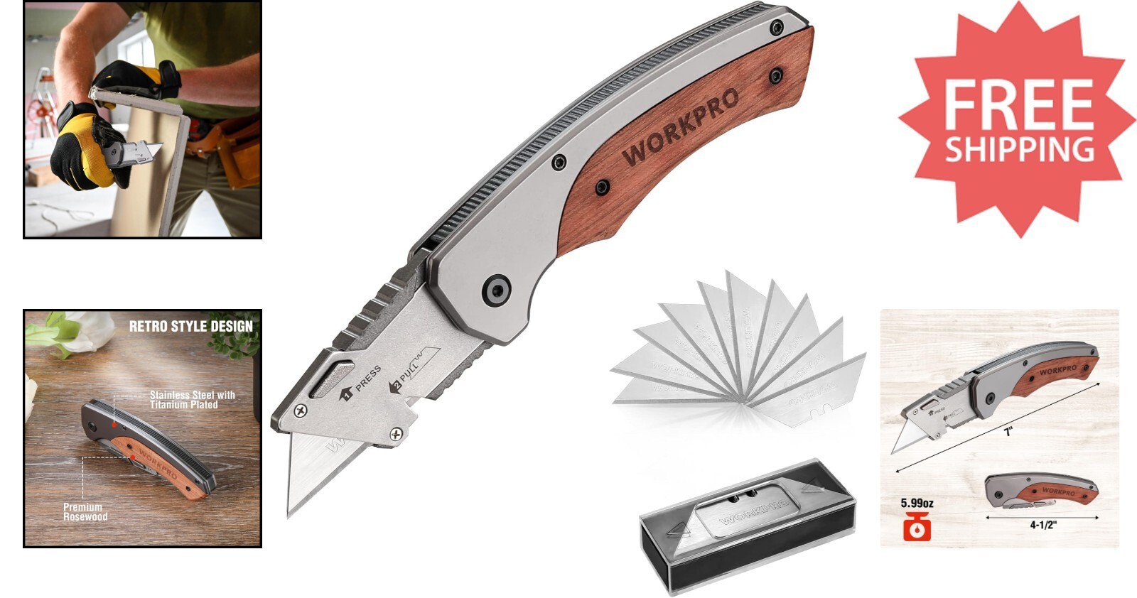 Experience durability and classic style with our utility knife featuring a high-quality rosewood handle, offering a sophisticated retro look. The innovative quick blade change mechanism allows effortless replacement of blades with just a press of a button?no tools needed?and is compatible with most standard blades, including 10 extra SK5 blades included. Safety is paramount, with an anti-slip grip and liner lock design to securely hold the blade during use. Compact and portable, it comes with a belt clip for easy carry on your belt, pocket, or bag. Versatile in application, this sturdy knife effortlessly cuts through paper, carpet, plastic, cartons, cloth, leather, PVC, and more. To ensure fast and reliable delivery, we work with multiple fulfillment partners and suppliers. Depending on availability and location, your order may ship from different warehouses or arrive in packaging that varies from item to item. Tracking details are typically provided shortly after shipment, and customer satisfaction remains our top priority.