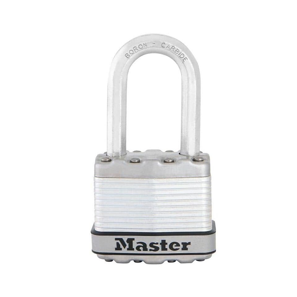 You are Buying a Brand New And factory Sealed Master Lock Heavy Duty Outdoor Padlock with Key, 2-1/2 in. Wide, 2-1/2 in. Shackle.. Model #M15XKADLJ... Octagonal lock shackle is 7/16 in. (11 mm.) wide in diameter and is 2-1/2 in. (64 mm.) long and made of Tough-Cut boron-carbide, 50% harder than hardened steel, offering maximum resistance from cutting and sawing. The five-pin cylinder prevents picking and the dual locking ball bearings