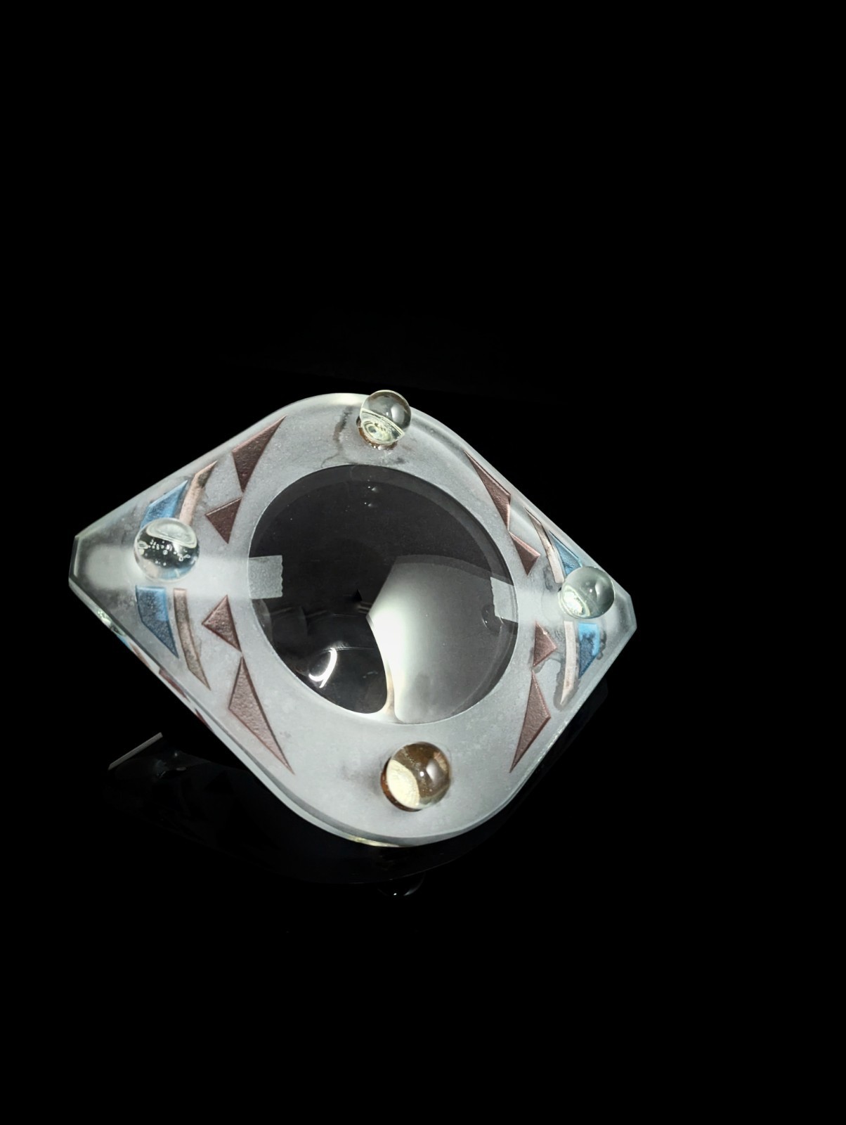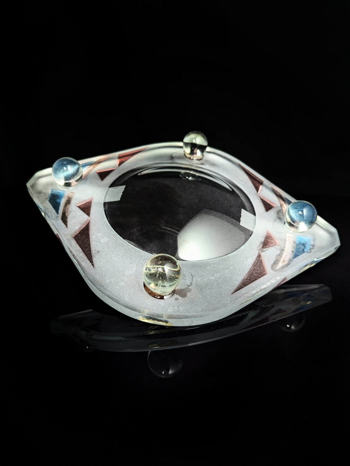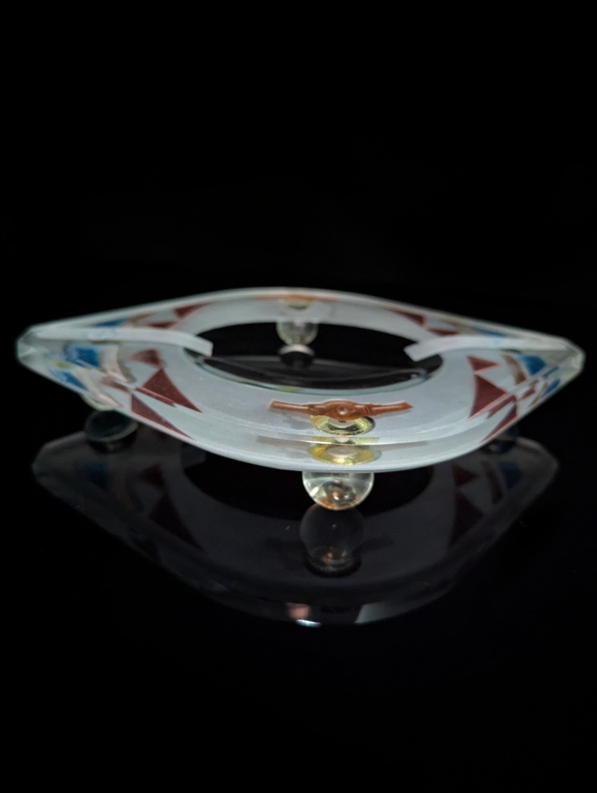 This Heavy Glass Cigar Ashtray is a handmade collectible piece from the United States. Made of durable glass, this ashtray is perfect for holding cigar ash without the risk of it being easily knocked over. With its unique design and quality craftsmanship, this ashtray is a stylish and functional addition to any smoker's collection.