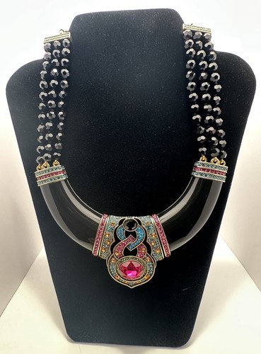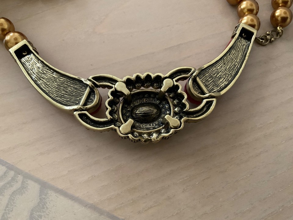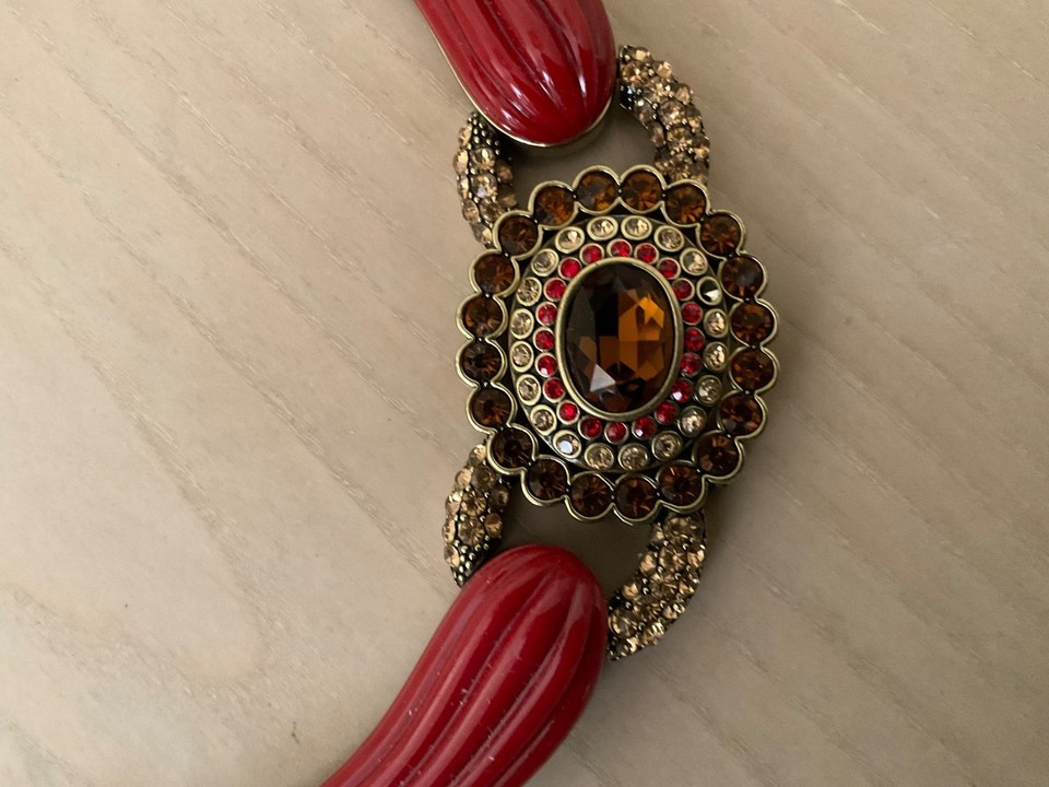 - Heidi Daus Golden Beads Red Necklace with Amber / Red Rhinestones