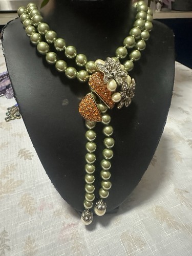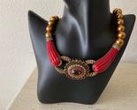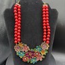 Heidi Daus Golden Beads Red Necklace with Amber / Red Rhinestones 21 in. x 2 1/2 in.
