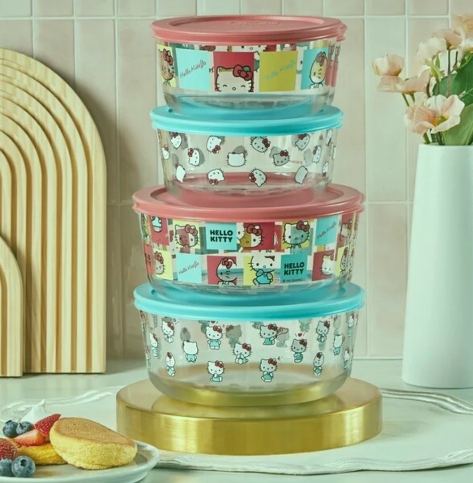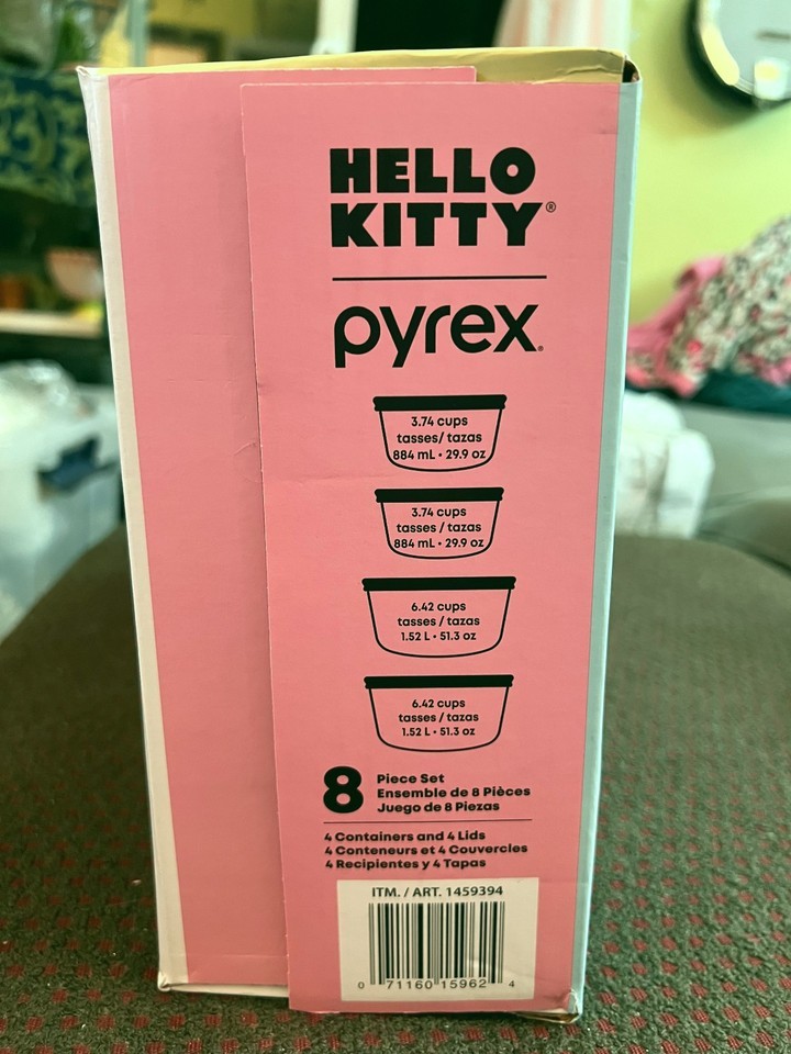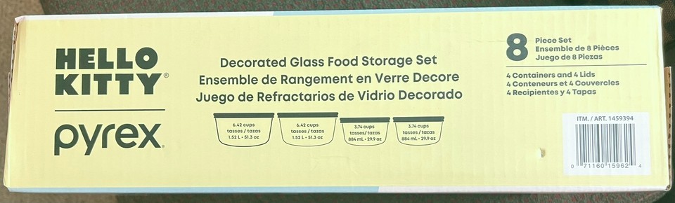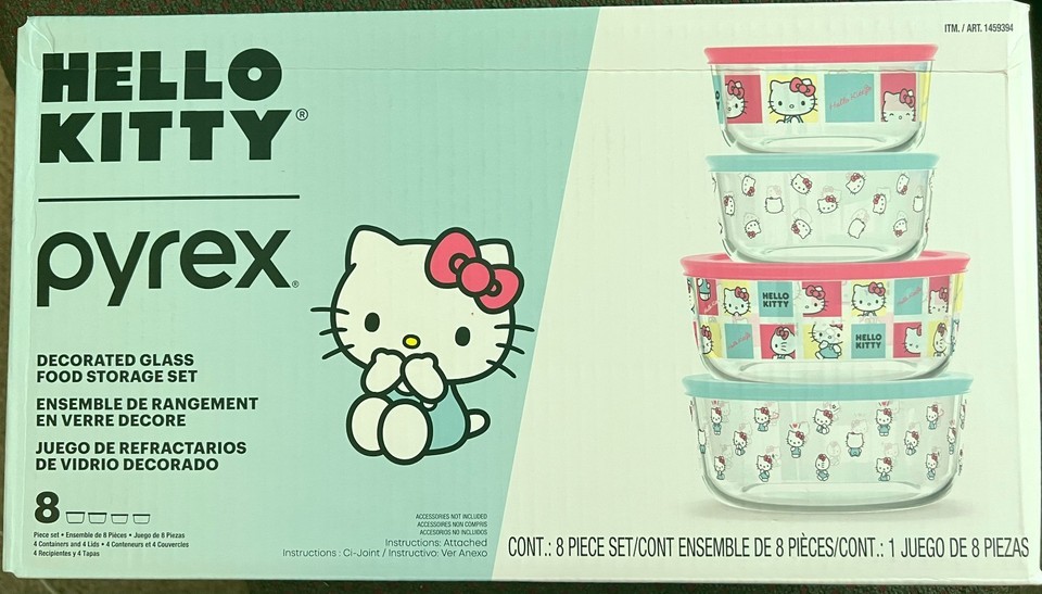 - HELLO KITTY PYREX - Decorated Glass Food Storage Set - 8 Pcs - New In Box