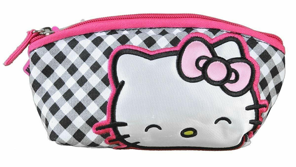 - Hello Kitty Sanrio Gingham Bow Cosmetic Case Makeup Pouch Accessory Bag NEW