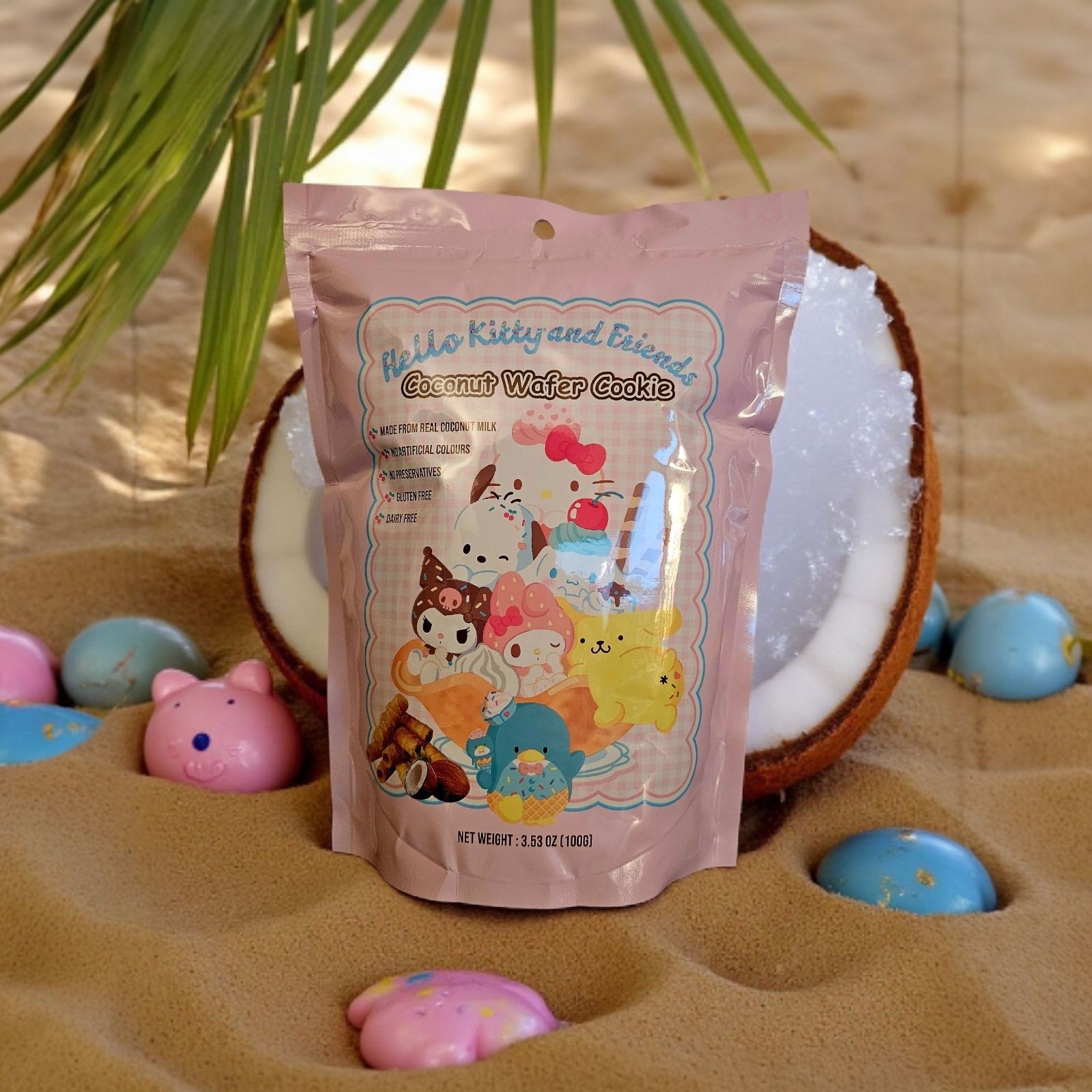 - Hello Kitty and Friends Coconut Wafer Cookie 100g, Gluten Free- Pack of Three(3)
