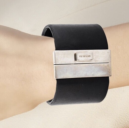 - Helmut Lang 2004 Vintage Leather and Metal Cuff Bracelet
