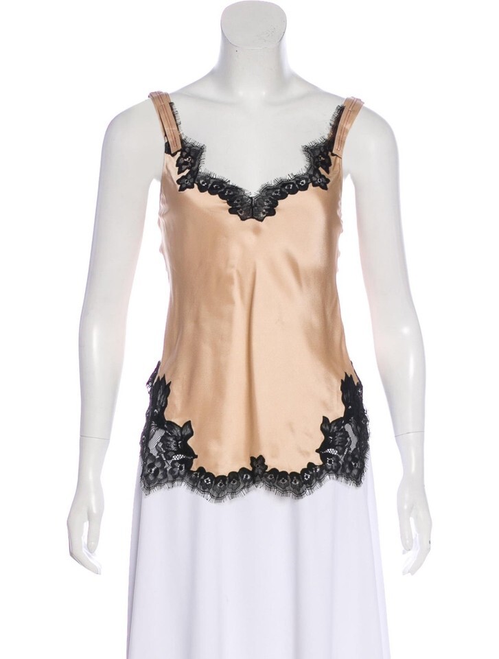 - Helmut Lang $345 Lace Trim Silk Cami Slip Tank Top Sandstorm XS