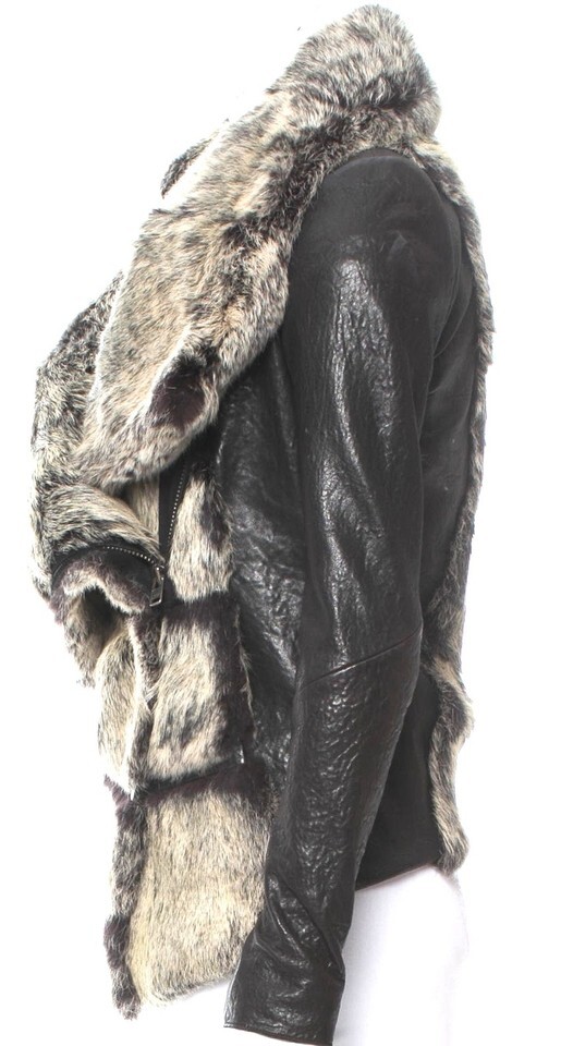 - Helmut Lang Intermix Exclusive Flux Fur & Leather Coat Jacket Black S $1895