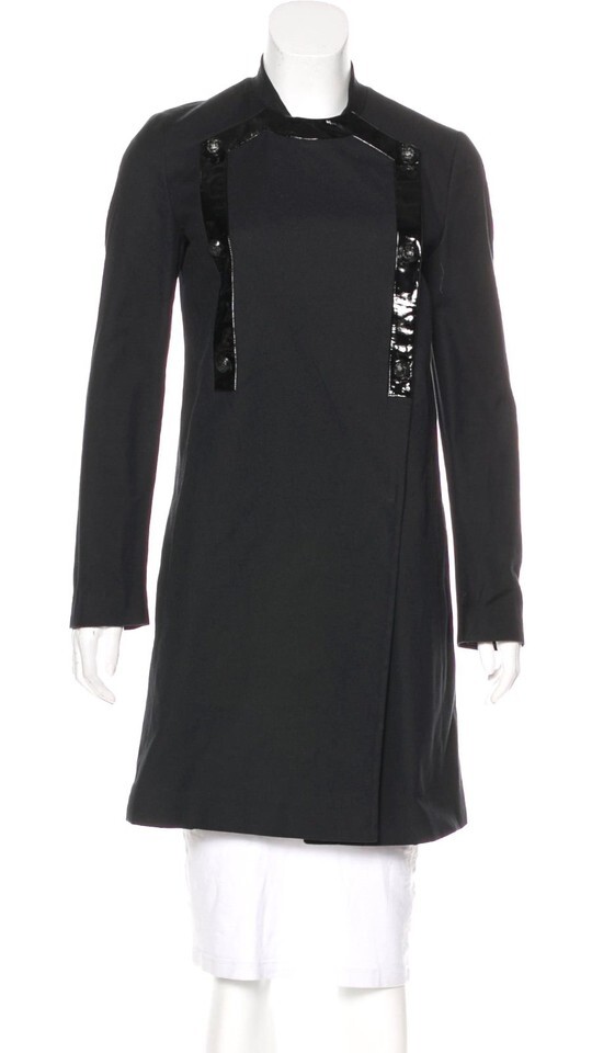- Helmut Lang Rare Original Archival Vintage Black Patent Leather Trim Coat 40 IT
