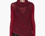 This is a great Helmut Lang sweater. The "Tattered Tape" sweater in thick yarn with open knit body and denser knit sleeves, in maroon red. Turtleneck, asymmetric hem. Very good lightly worn condition with no flaws.