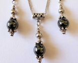 Beautiful Victorian filigree silver-tone Hematite jewelry set earrings and necklace . Dangle earrings. Drop earrings . Boho Hematite jewelry set earrings and necklace. Bohemian earrings and necklace. Silver-tone Boho jewelry set. Vintage style jewelry set. Oriental style jewelry set. Victorian style Hematite beautiful earrings and necklace set. Antique style Hematite jewelry set.