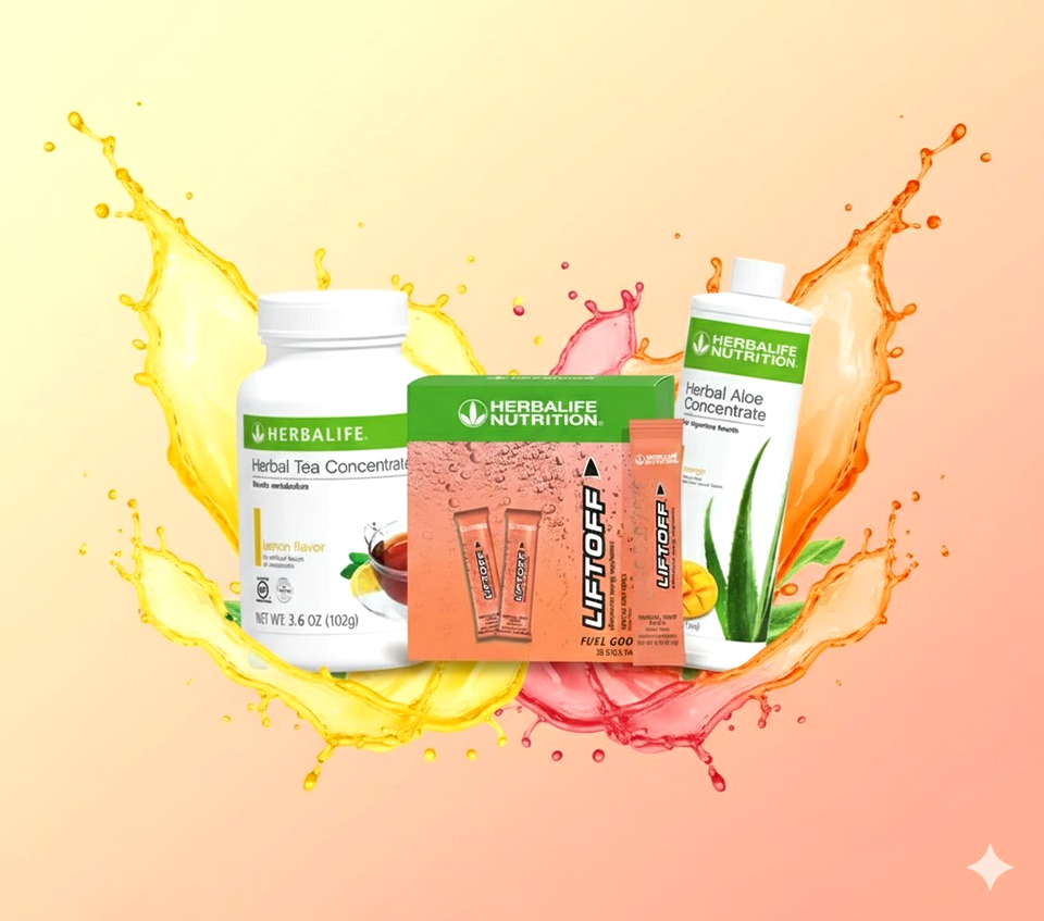 Start your day strong and feel revitalized with this tropical Herbalife trio! Featuring Lemon Herbal Tea Concentrate, Mango Aloe Concentrate, and 30 Liftoff Tropical Energy Sticks, this set delivers clean energy, digestive support, and a delicious tropical twist ? perfect for mornings, workouts, or busy days.