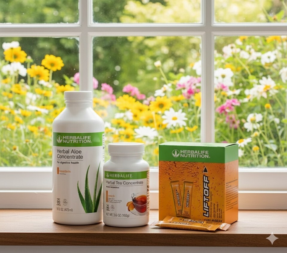Start your day strong and stay powered up with this ultimate Herbalife trio! The combination of Peach Herbal Tea Concentrate, Mandarin Aloe Concentrate, and 30 Liftoff Ignite-Me Orange Energy Sticks keeps you hydrated, focused, and feeling unstoppable.