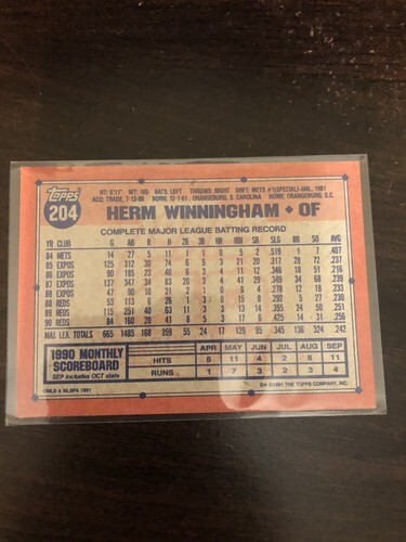 - HERM WINNINGHAM CINCINNATI REDS 1991 TOPPS "40 YEARS OF BASEBALL" CARD #204