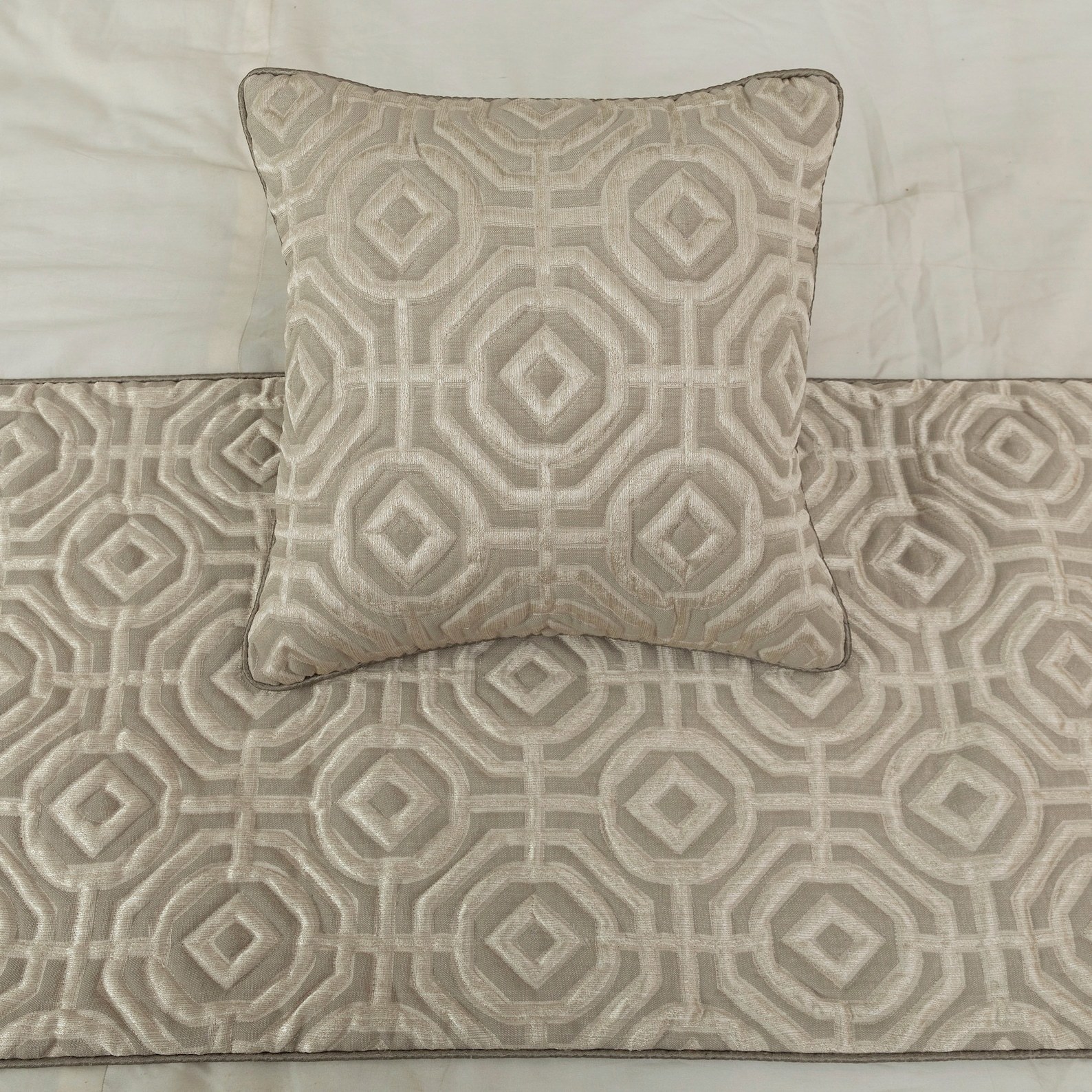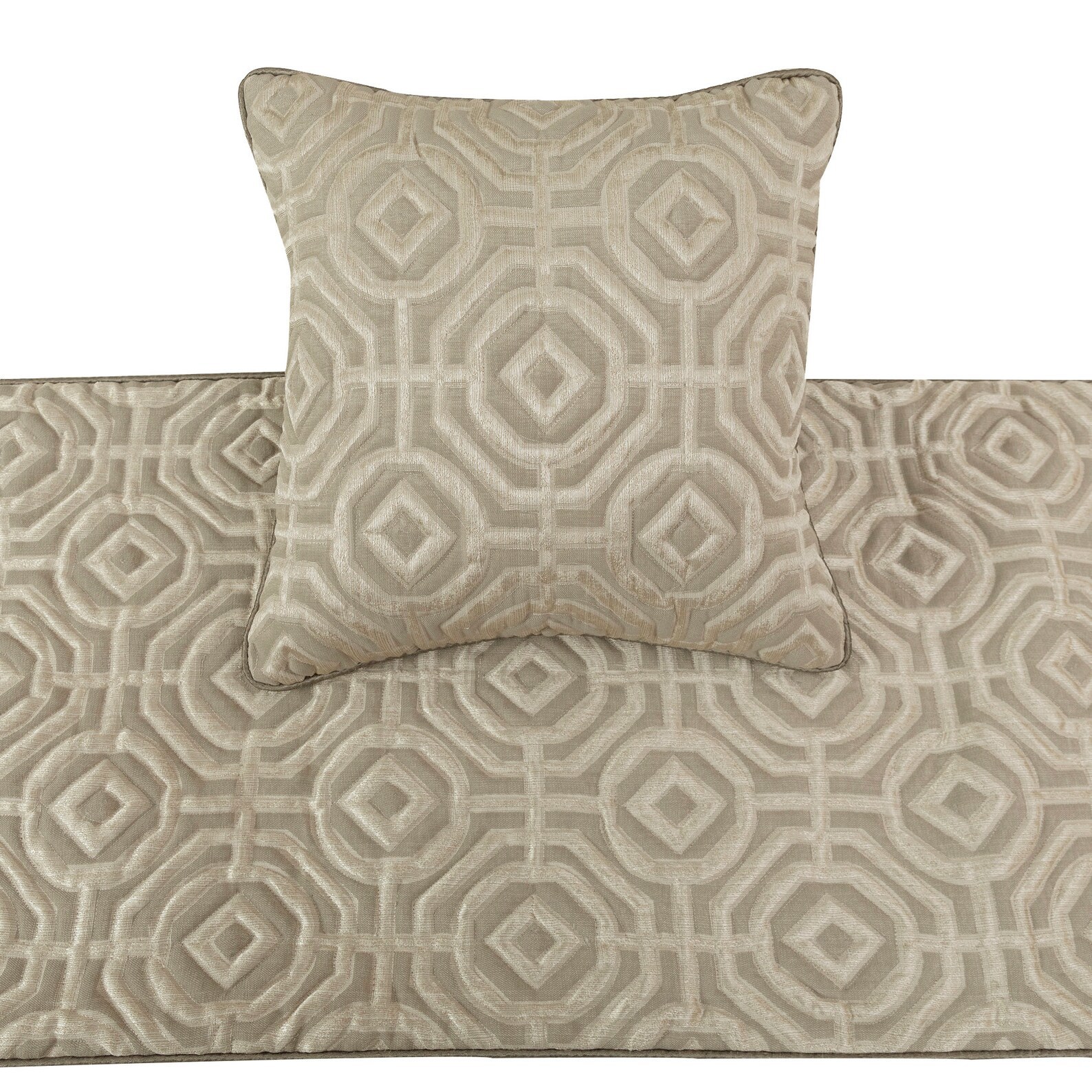 Hexagonal Norma - Jacquard Beige Decorative Bed Runner and Pillow Cover