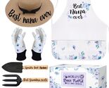 PACKAGE INCLUDEDMothers Day Gifts for Nana - Gardening Gifts Package includes 1 pcs nana garden apron, 1 pcs Soil Scoop,1 pcs Transplant Trowel,1 pcs cultivator,1 pair of gardening glove and 1 rustic straw hat,We wrapped all of them perfectly in a floarl gift box
