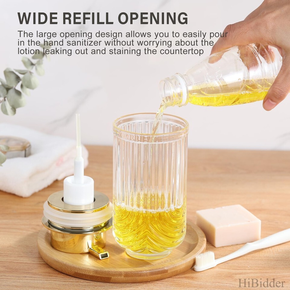 - HiBidder Glass Soap Dispenser w/ Gold Pump Clear Bathroom Kitchen Decor