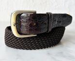 - Hickok Brown Genuine Alligator/Woven Fabric Belt-Brass Buckle & Links-Men's SM