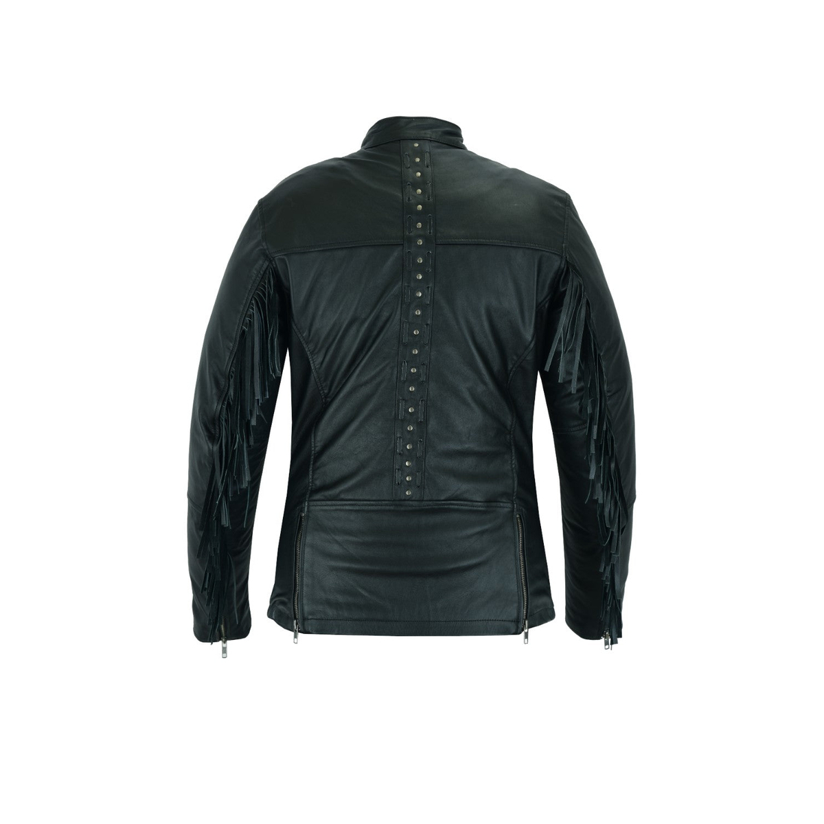 - High Mileage Ladies Black Fringe and Rivet Leather Jacket - 715549