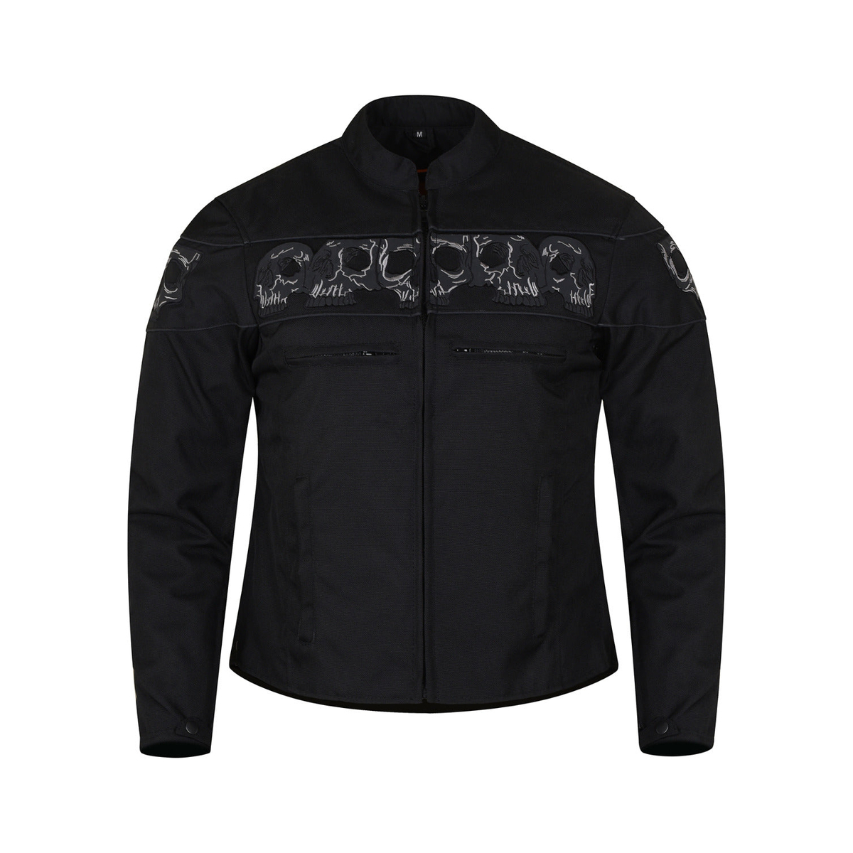 High Mileage Men's Textile Jacket with Embroidered Reflective Skulls - 569315