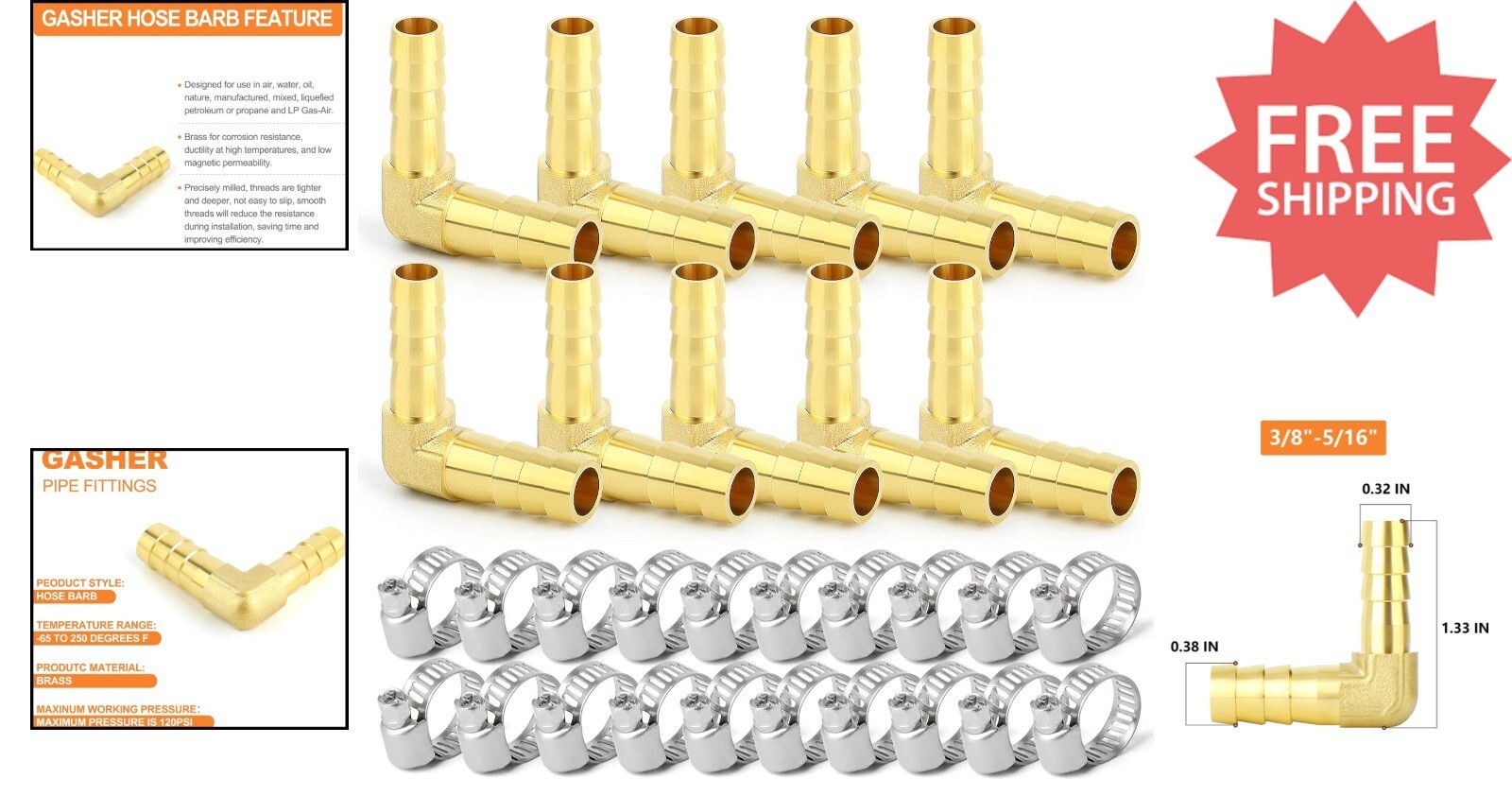 - High-Performance 10-Piece Brass Hose Reducer with Adjustable Clamps Included