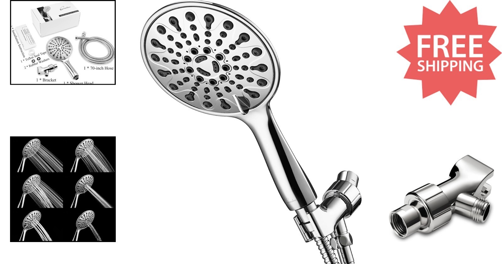 Experience ultimate shower luxury with our 6-inch oversized rainfall spray face, designed to fully cover your body for a refreshing, full-moisture experience. Enjoy a variety of 6 spray settings?including Bubbling Rain, Bubbling Water, Power Rain, Shampoo Rinsing, Pulsating Massage, and Water Saving Mode?tailored to your showering needs. Crafted with high-purity, durable ABS material and equipped with medical-grade nozzles, this elegant fixture seamlessly combines art and quality for a sophisticated bathroom upgrade. Easy to install without tools or plumbers, our detachable handheld shower head fits all standard shower arms and allows your family, kids, and pets to indulge in spa-like relaxation in just minutes. Backed by a lifetime limited and dedicated customer support, we?re committed to your satisfaction. To ensure fast and reliable delivery, we work with multiple fulfillment partners and suppliers. Depending on availability and location, your order may ship from different warehouses or arrive in packaging that varies from item to item. Tracking details are typically provided shortly after shipment, and customer satisfaction remains our top priority.