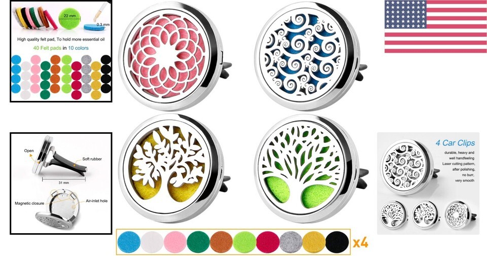 - High-Quality Metal Car Vent Diffuser Clips - 4PCS with 40 Felt Pads Included