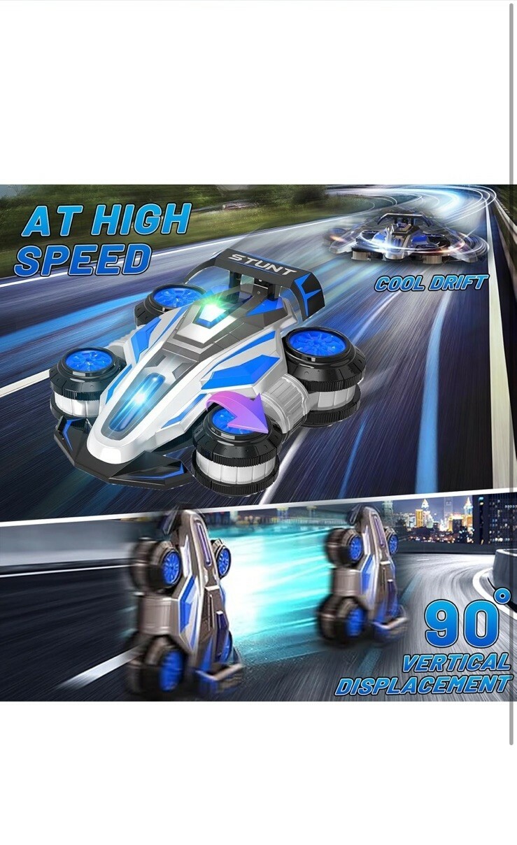 The High-Speed Drift RC Stunt Deformation Car in blue is a cool and high-performing toy car designed for children aged 3 years and up. Manufactured by Haojun, this stunt car features 360-degree rotating capabilities and is made of durable plastic material. It requires 2 lithium-ion batteries for optimal performance, making it an exciting and entertaining choice for kids to enjoy hours of fun and imaginative play. Perfect for young enthusiasts looking for a thrilling and interactive toy car experience.
