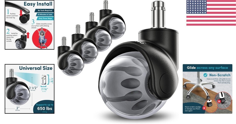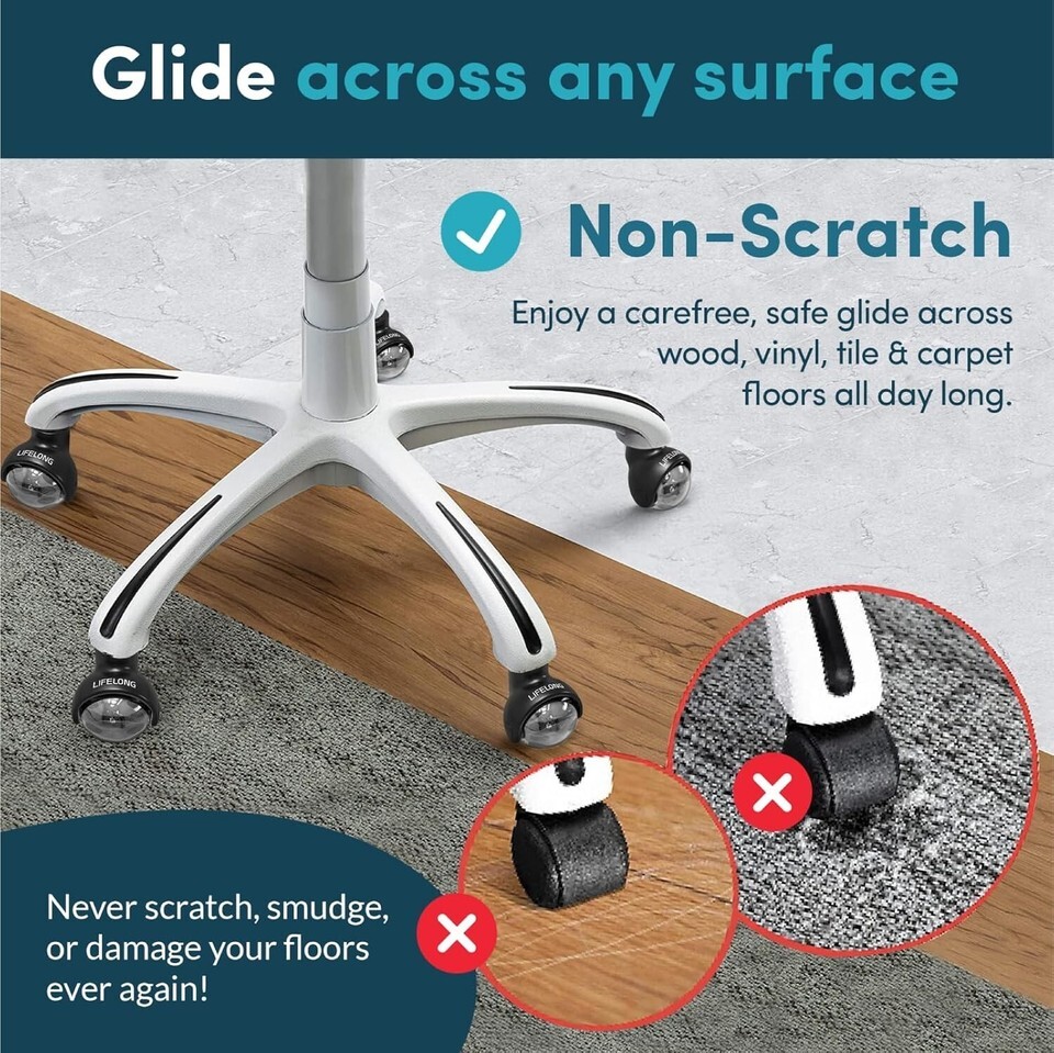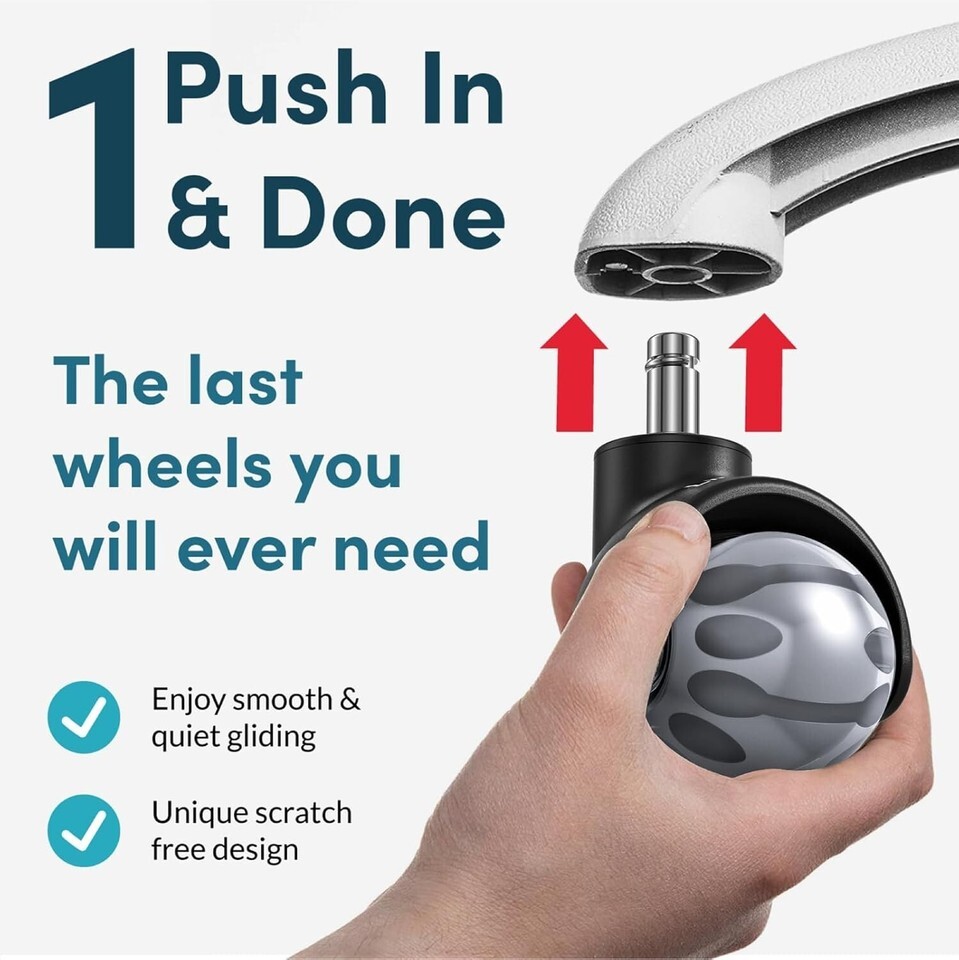 Upgrade your workspace with our High-Strength Office Chair Wheels! Never worry about damaging your floors again while enjoying smooth, silent mobility. Invest in the last office chair wheels you'll ever need and experience unparalleled quality. Order yours today!