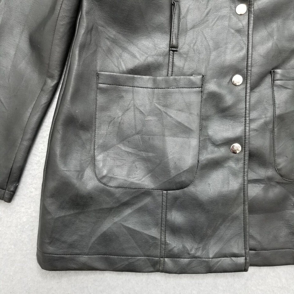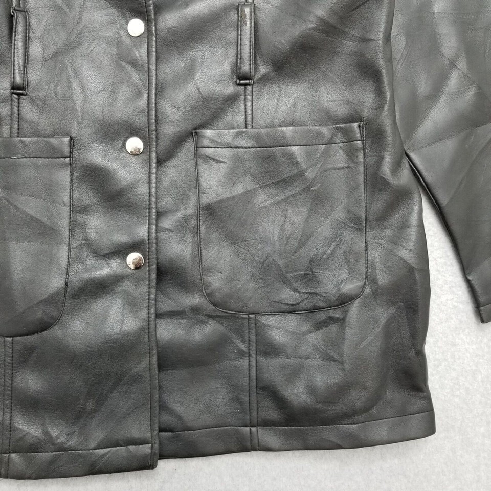 - Highway Jacket Womens Medium Black Snap Pockets Faux Leather