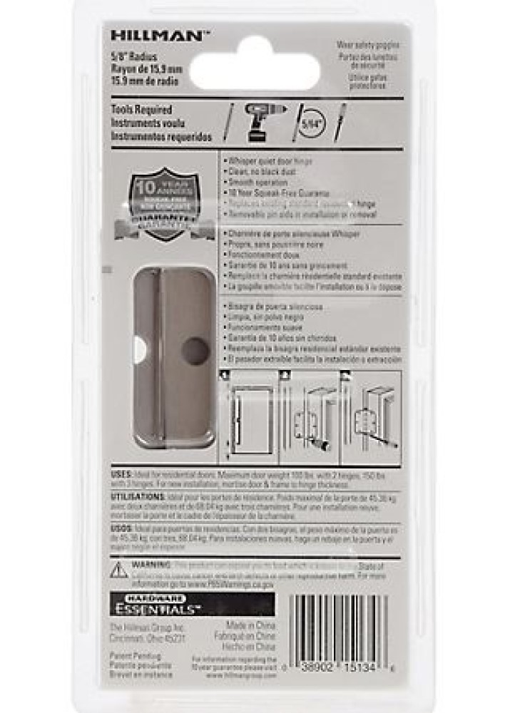 - Hillman 854321 Squeak-Proof 5/8" Round Corner Door Hinges 3-1/2"