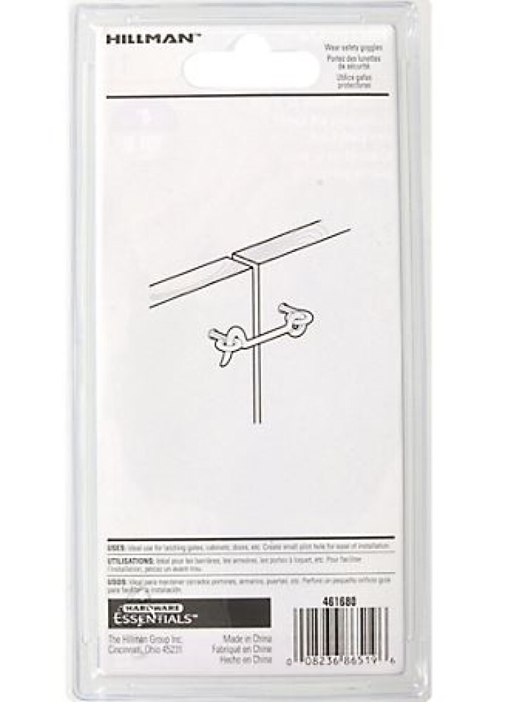 Hardware Essentials Hook and Eye Latches Zinc (4") are great for latching gates, cabinets, doors, and more. These robust latches are available in different finishes. Installation tip: drill a pilot hole before use.