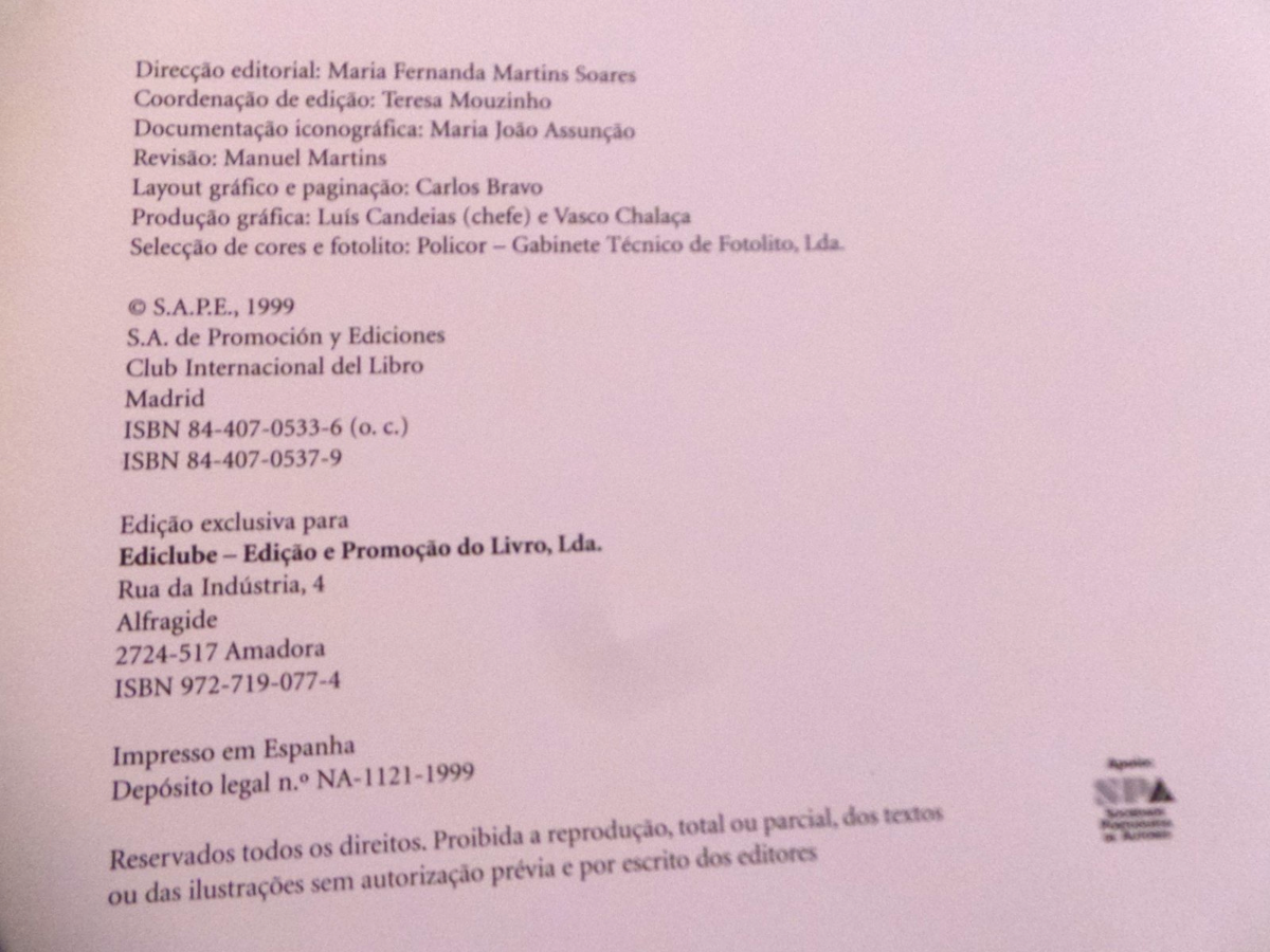 Hardcover with dust jacket. all Portuguese text. 375 pages. Published by S.A.P.E. Club Internationciale del Libro / Ediclube