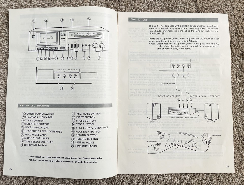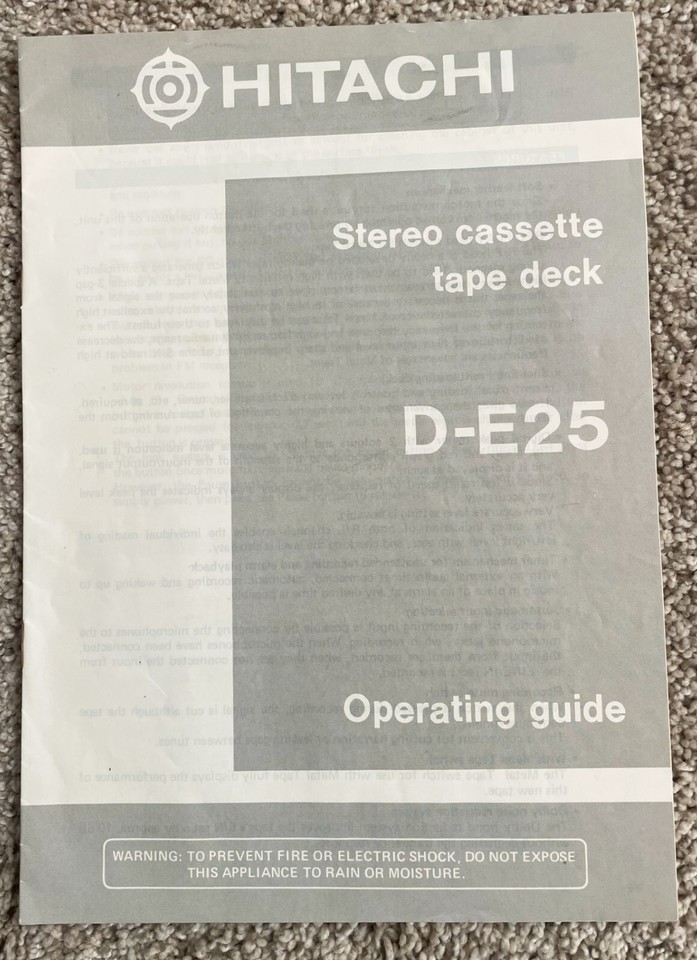 - Hitachi D-E25 Operating Guide Manual Original Stereo Deck Tape Player