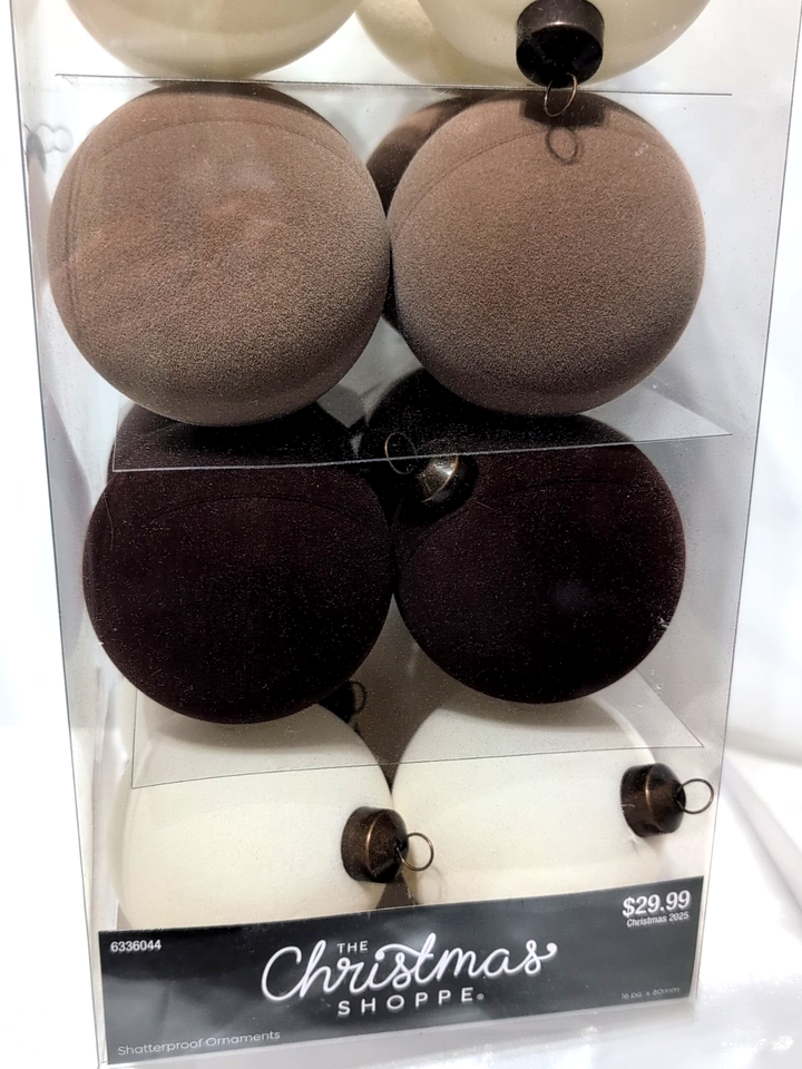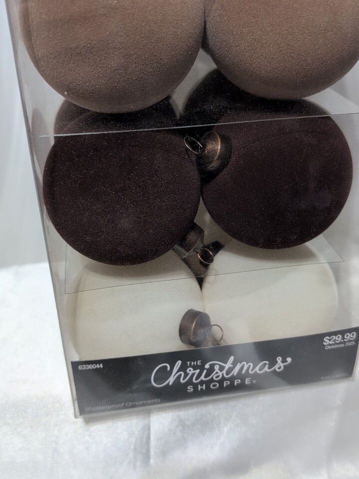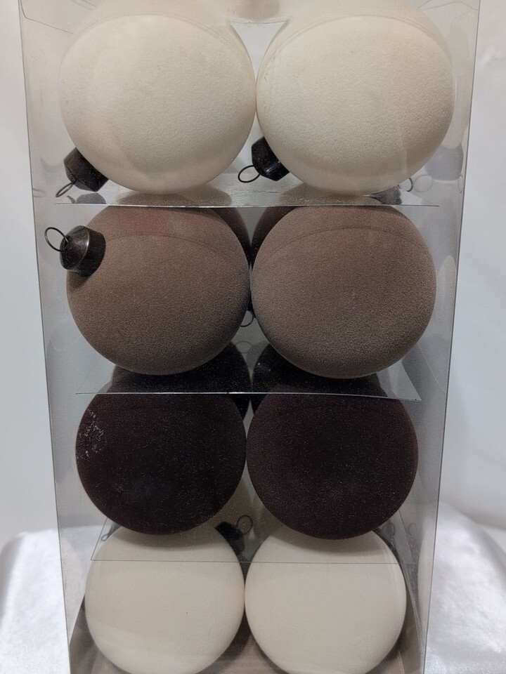 Set of 16 velvet flocked ornaments Tan Brown and Off White