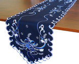 - Holiday Christmas Table Runner 13"X34", Cutwork Embroidered Floral Christmas Blu